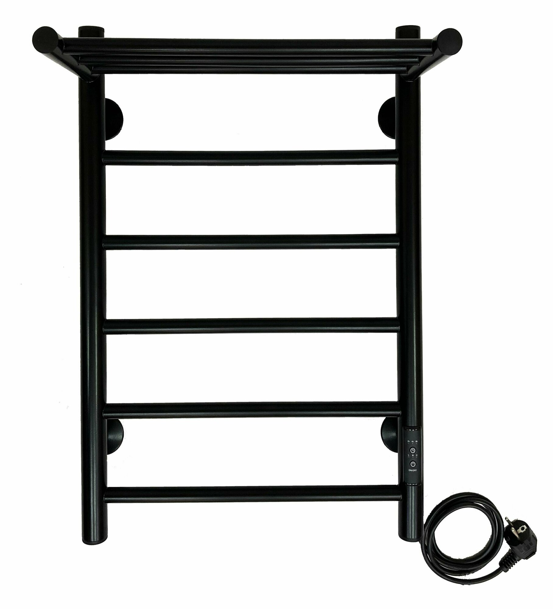 Полотенцесушитель электрический санприз Аврора П6 с полкой 400х600 черный матовый подключение универсальное форма Лесенка информация: