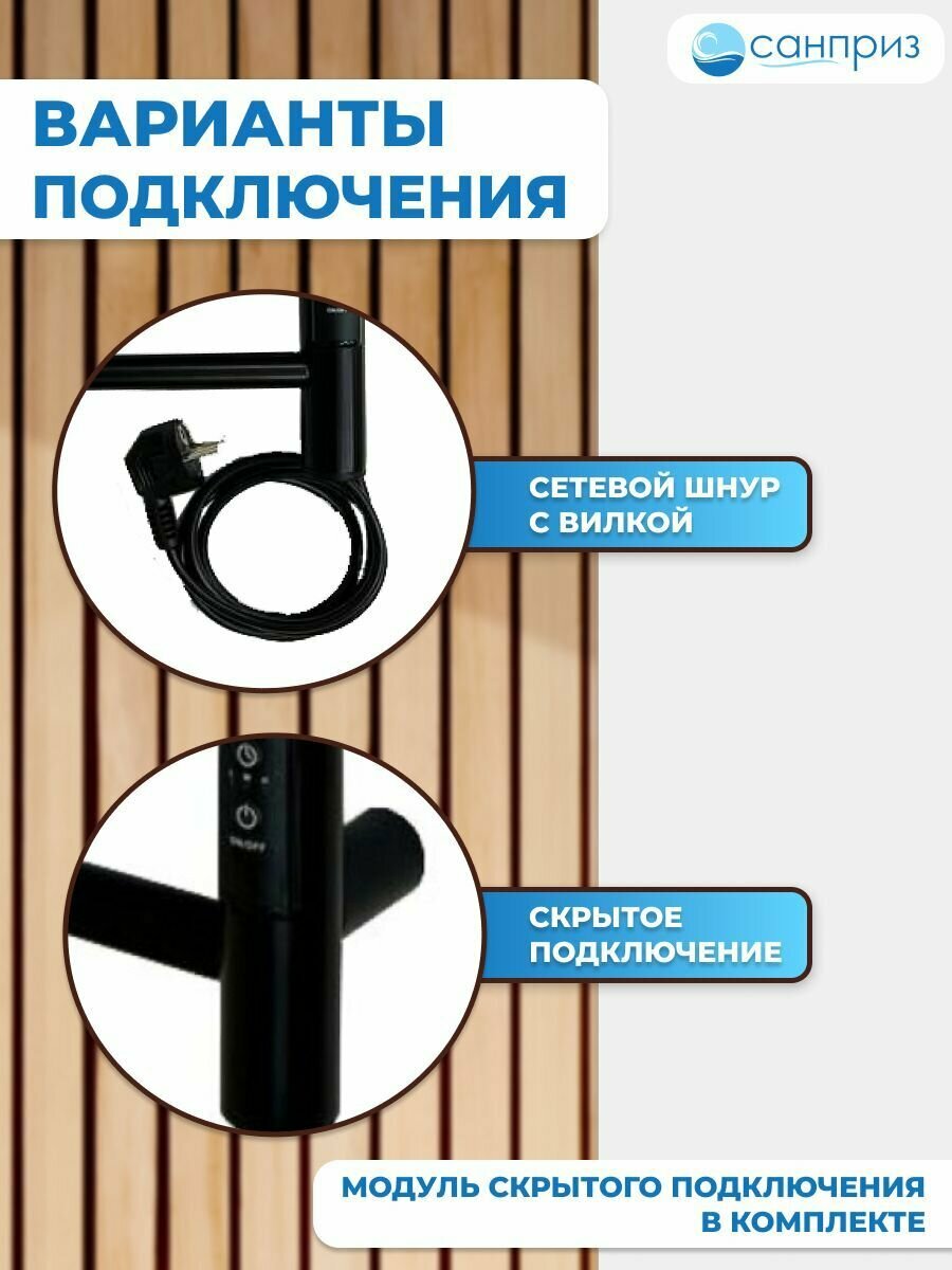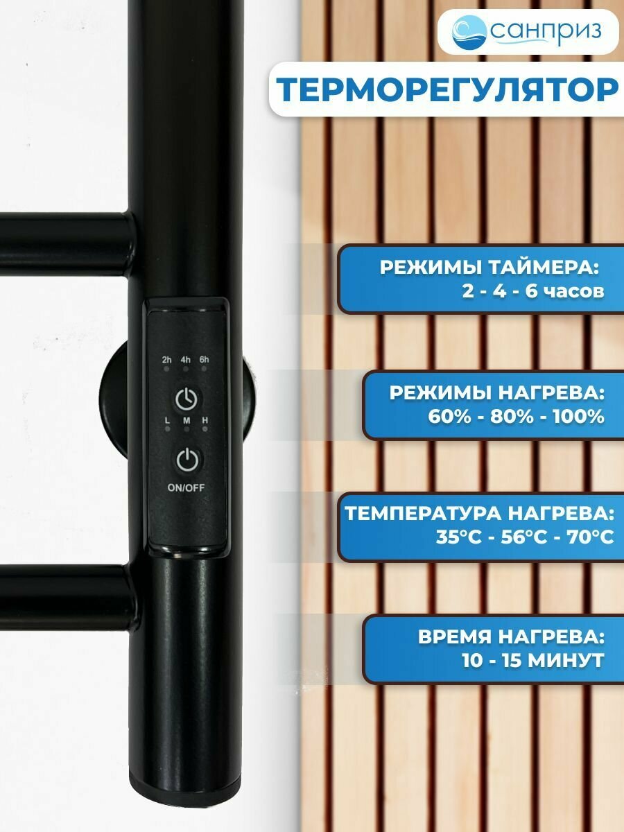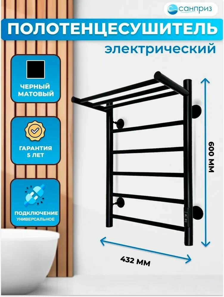 Отзывы на Полотенцесушитель электрический санприз Аврора П6 с полкой 400х600 черный матовый подключение универсальное форма Лесенка