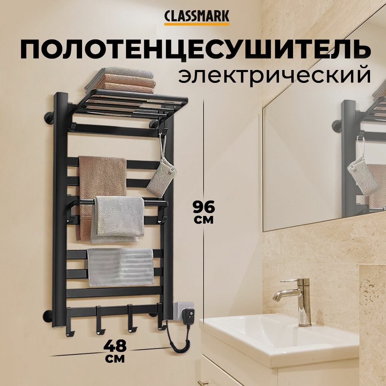 Отзывы на Полотенцесушитель электрический Classmark настенный с терморегулятором, боковая подводка, сухой ТЭН, вертикальная установка, 240 Вт, матовый черный