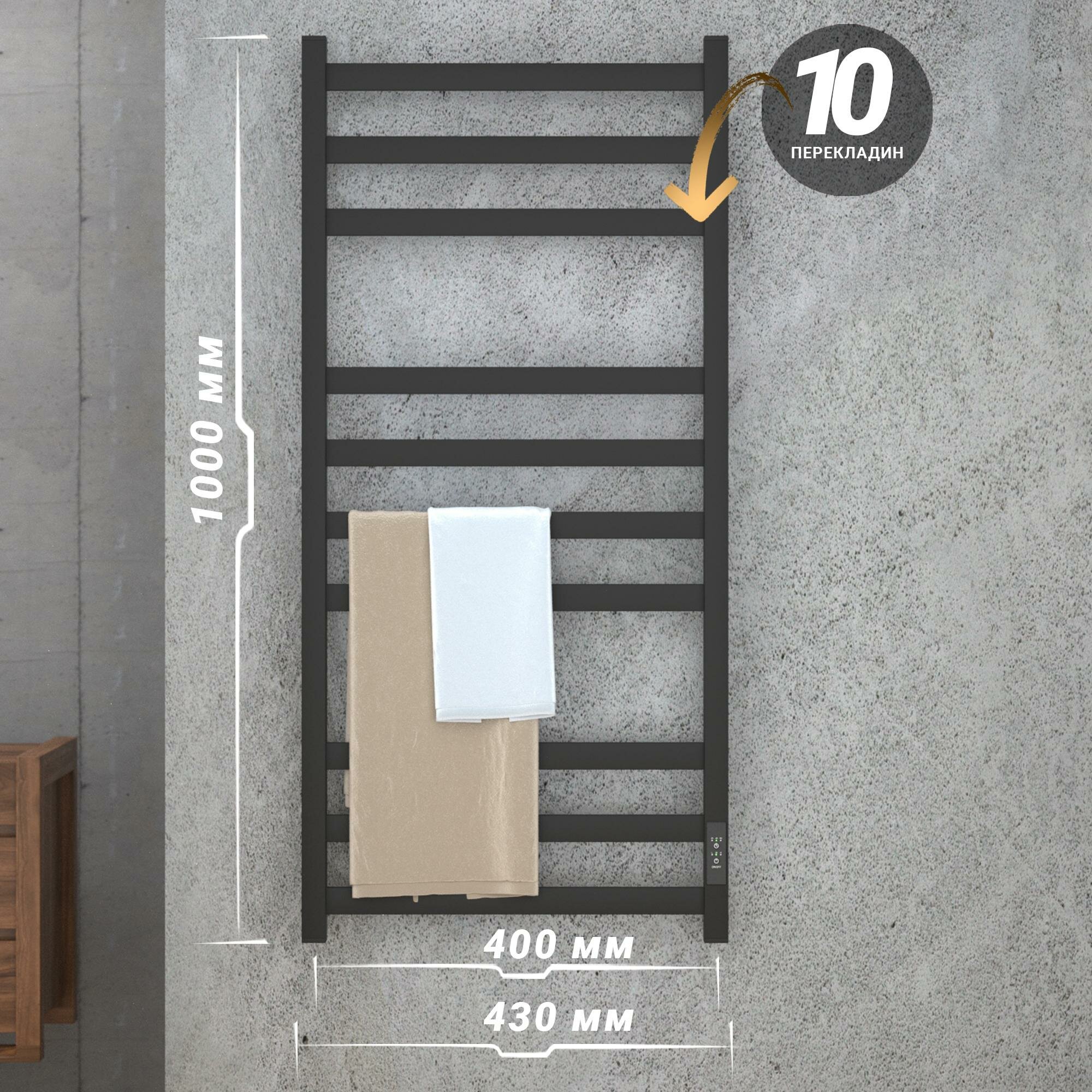 Полотенцесушитель электрический Маргроид В10 30х80, таймер, черный матовый