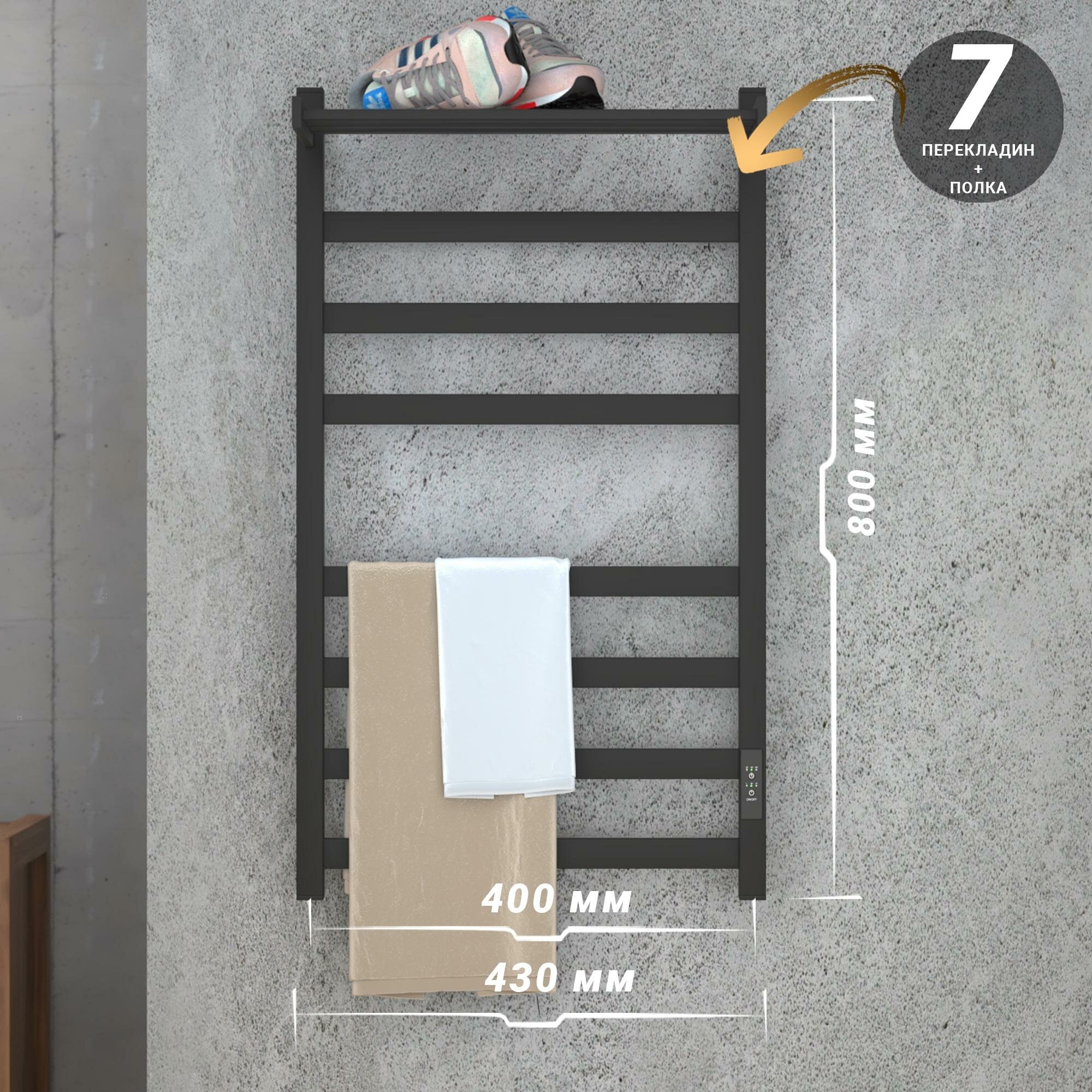 Отзывы на Полотенцесушитель электрический Point Меркурий PN83848PB П7 400x800 с полкой, диммер справа, черный