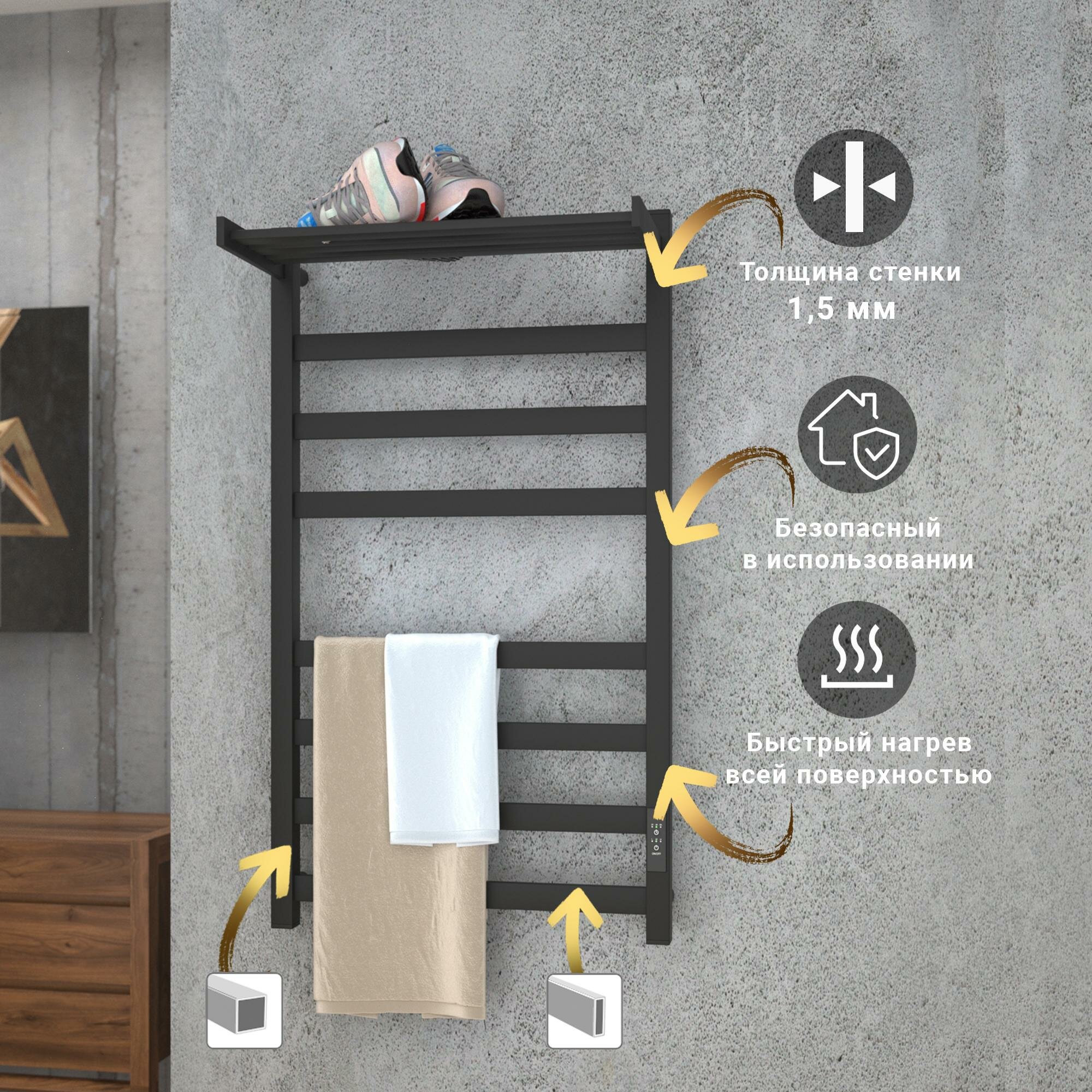 Полотенцесушитель электрический Маргроид В10 30х80, таймер, черный матовый