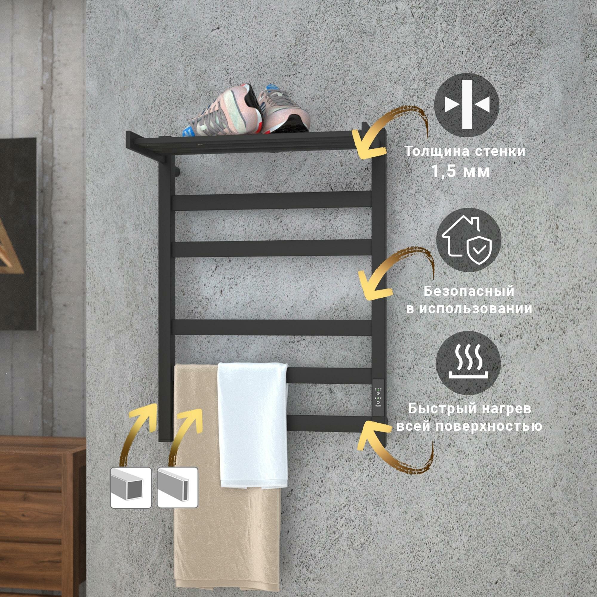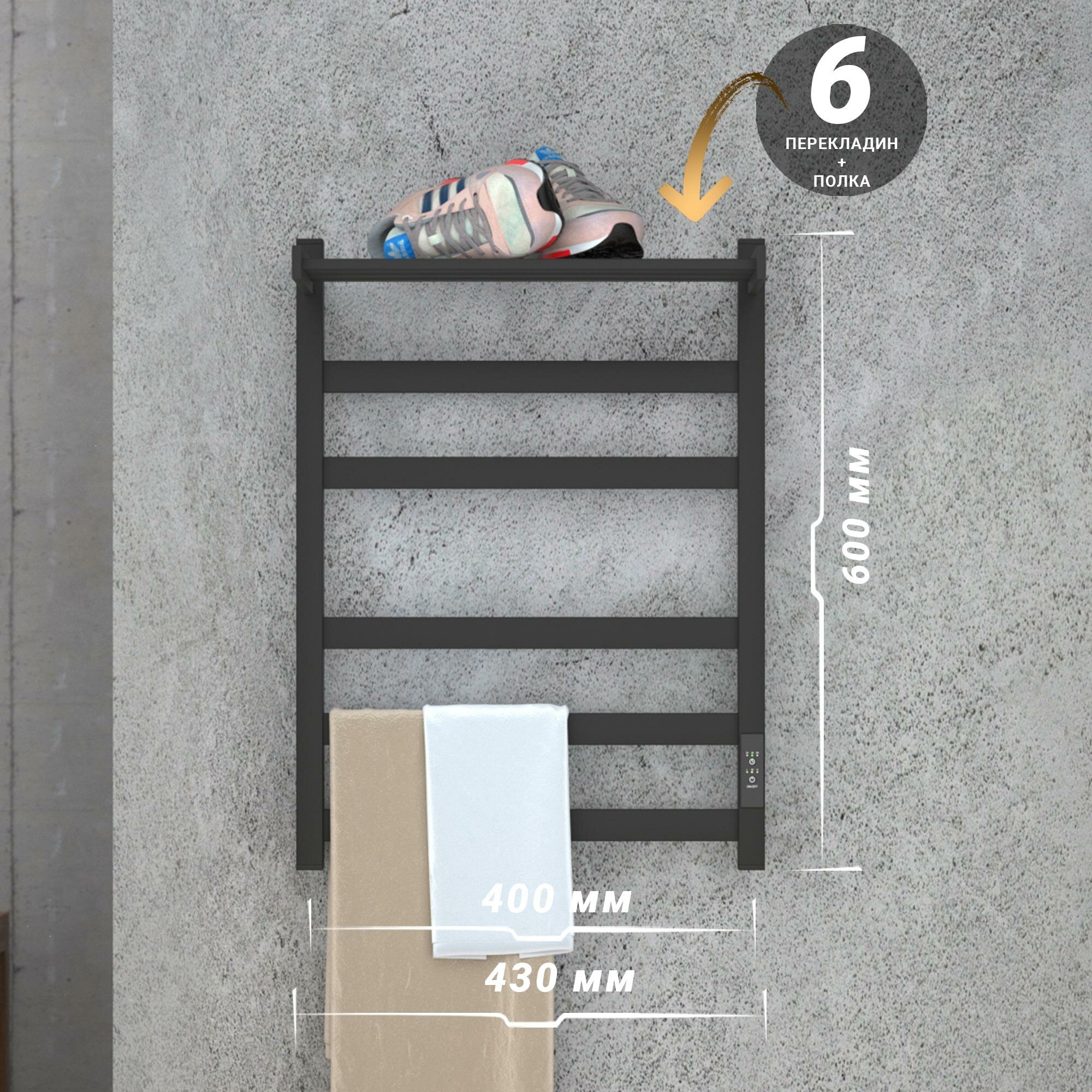 Отзывы на Полотенцесушитель электрический Point Меркурий PN83846PB П5 400x600 с полкой, диммер справа, черный