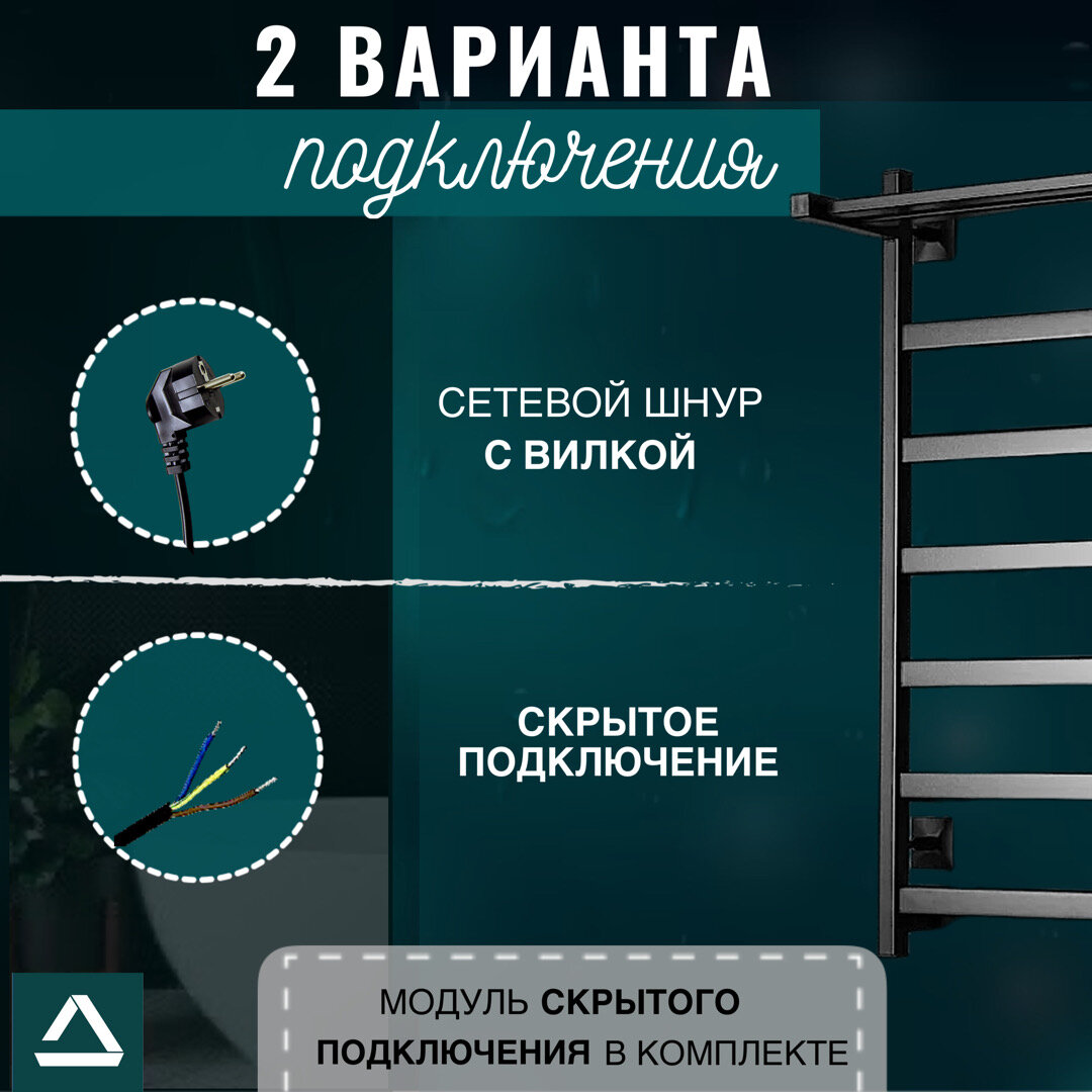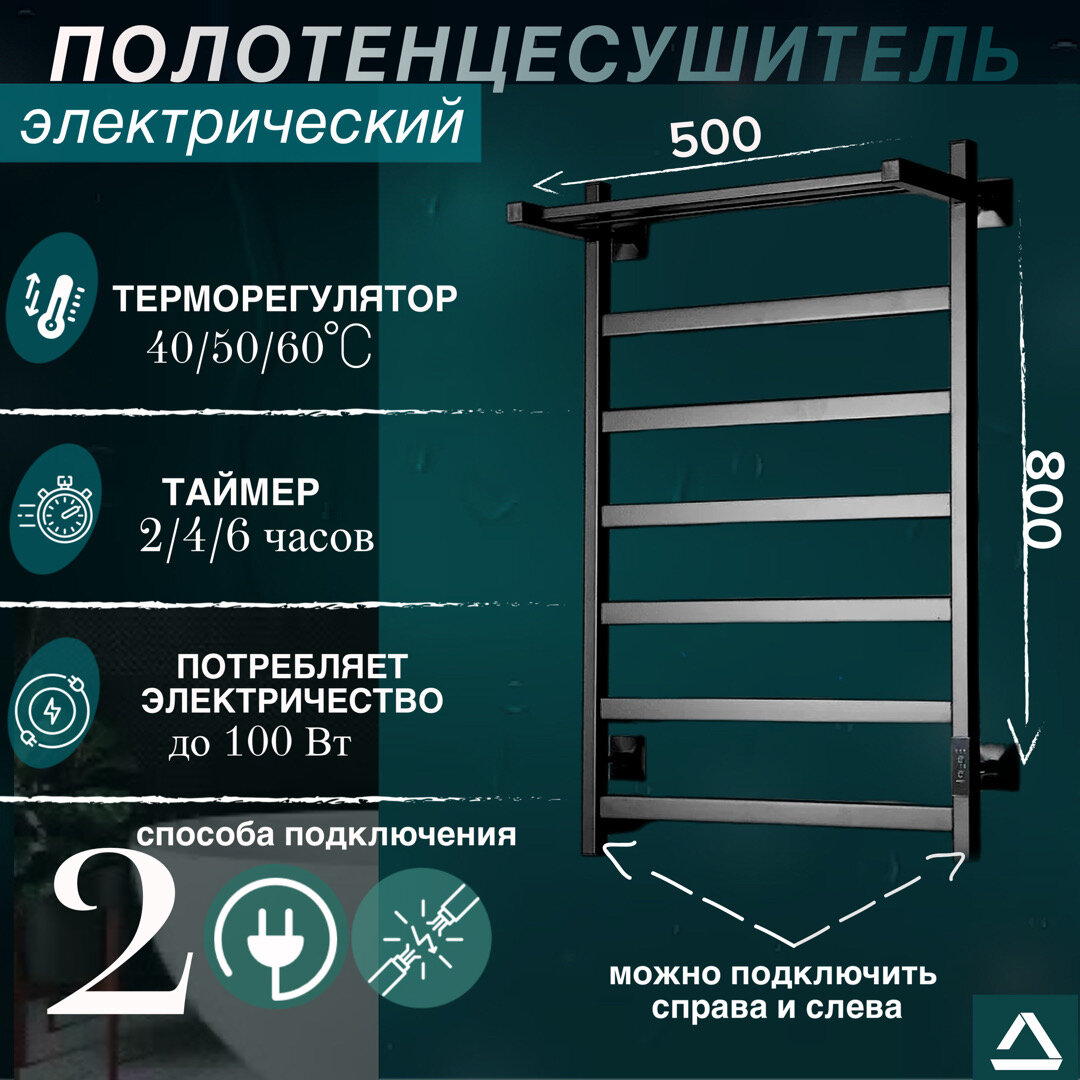 Полотенцесушитель электрический TermoPrime 500мм 800мм черный матовый скрытое подключение слева/справа/в розетку информация: