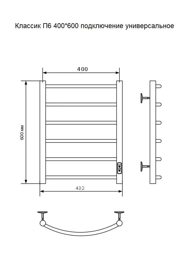 Полотенцесушитель электрический санприз Классик П6 400мм 600мм белый матовый подключение универсальное форма Лесенка информация: