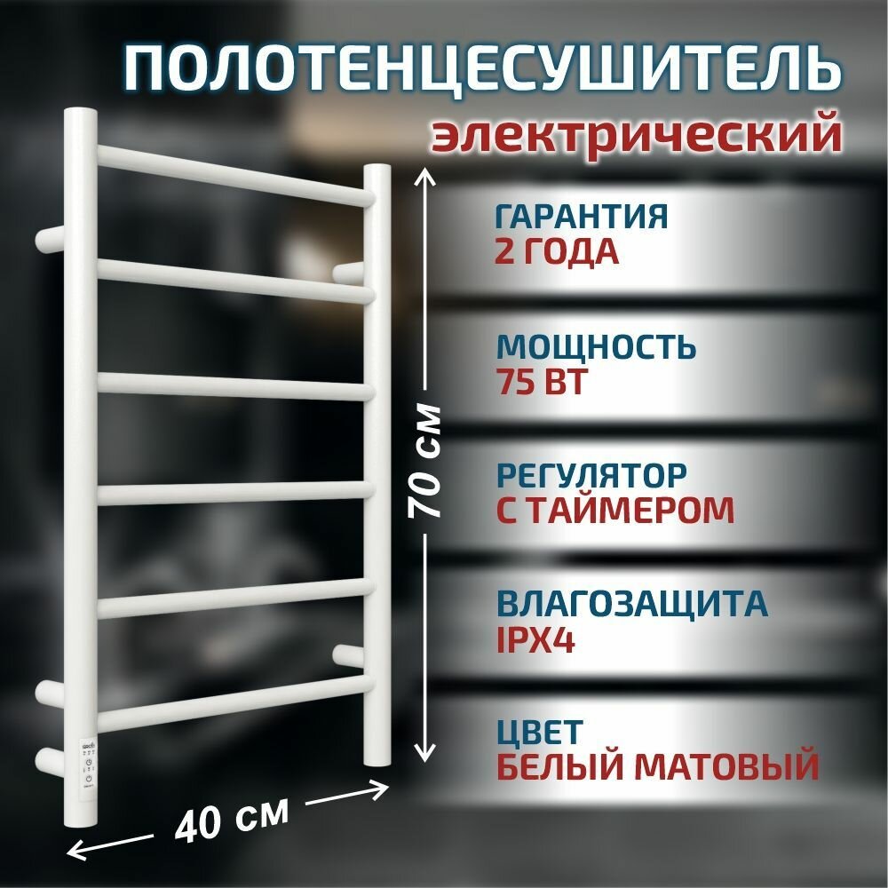 Полотенцесушитель электрический Grois Laura GR-131 400мм 700мм П6 белый матовый подключение слева форма Лесенка