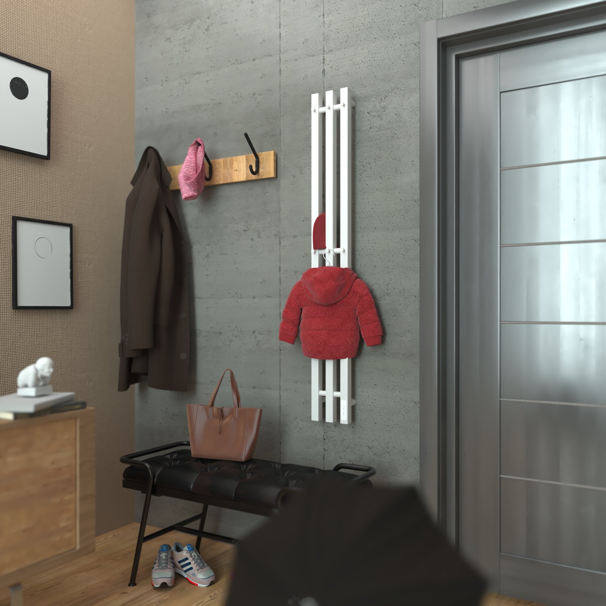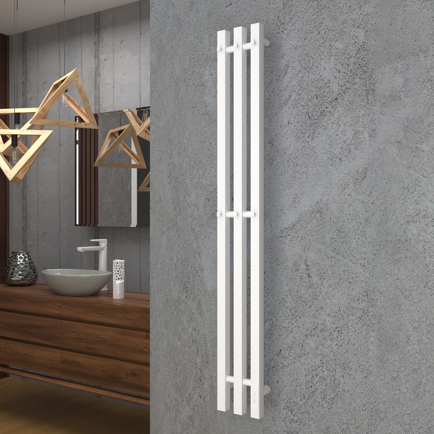 Полотенцесушитель дизайнерский электрический, профильный BAU Stella 8х80, 2 коллектора, 3 крючка (Белый DB-0071)
