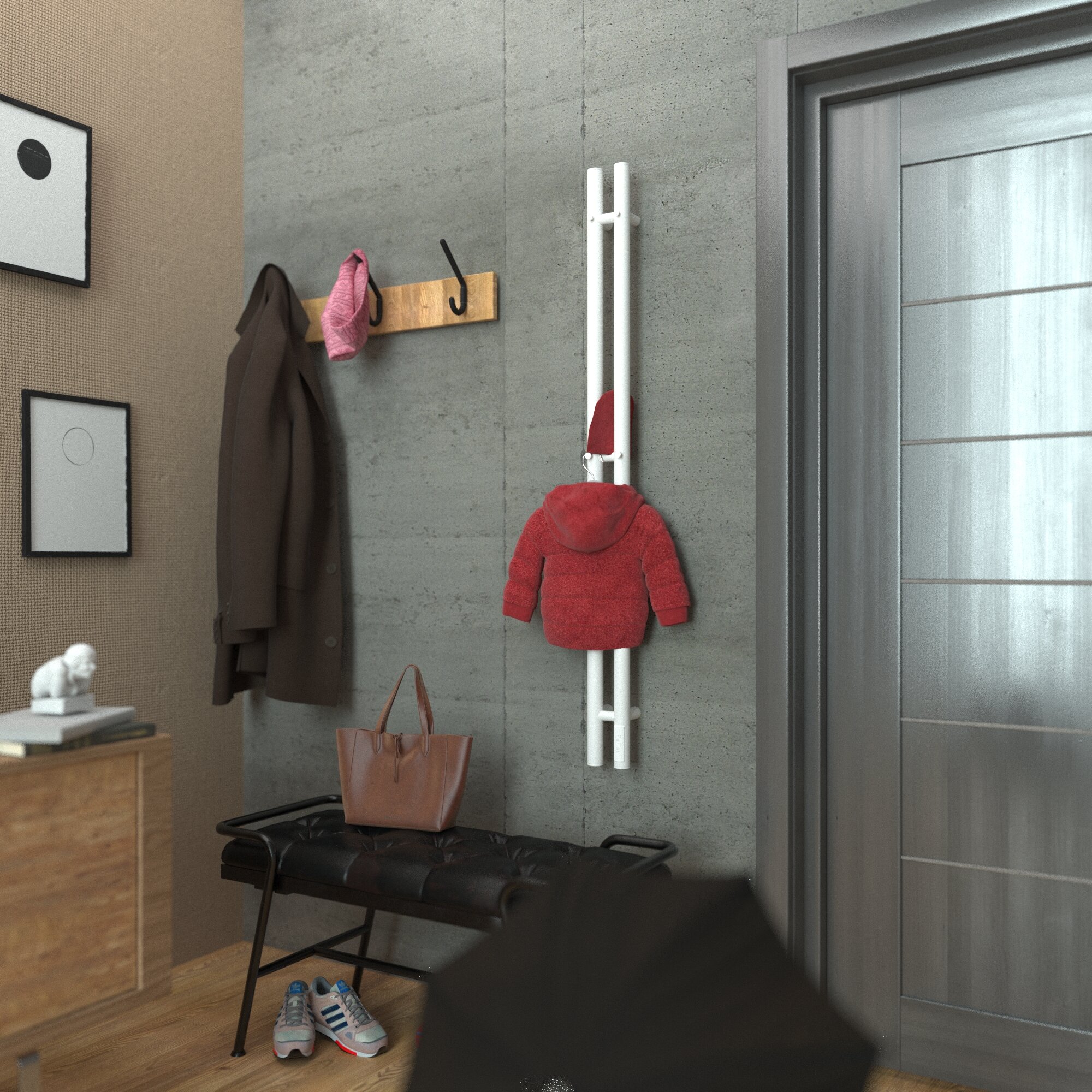 Полотенцесушитель дизайнерский электрический, профильный BAU Stella 8х80, 2 коллектора, 3 крючка (Белый DB-0071)