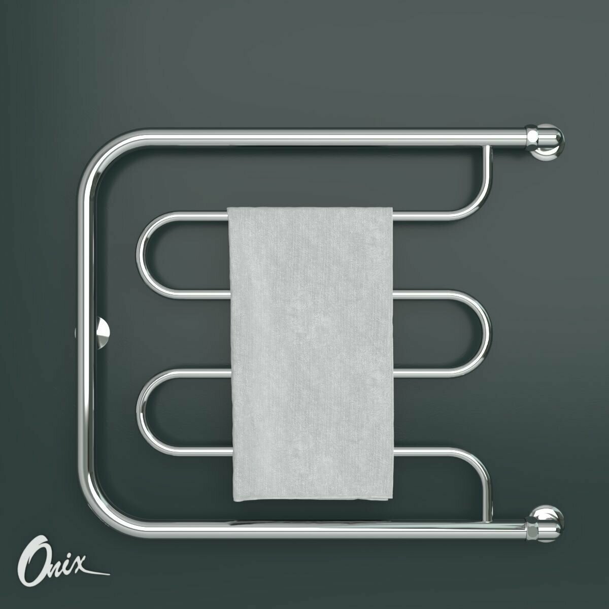 Полотенцесушитель Водяной Onix, модель Country Turn Right 500x500, фокстрот с боковым угловым подключением справа, полный комплект