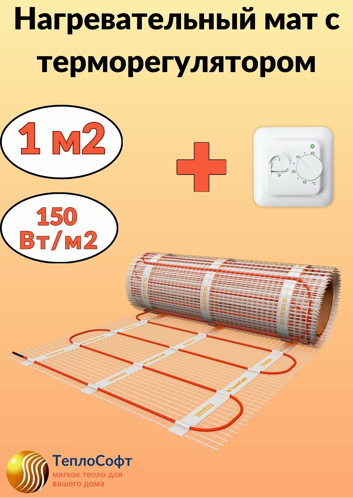 Тёплый пол под плитку Теплософт 1 м2 с терморегулятором информация: