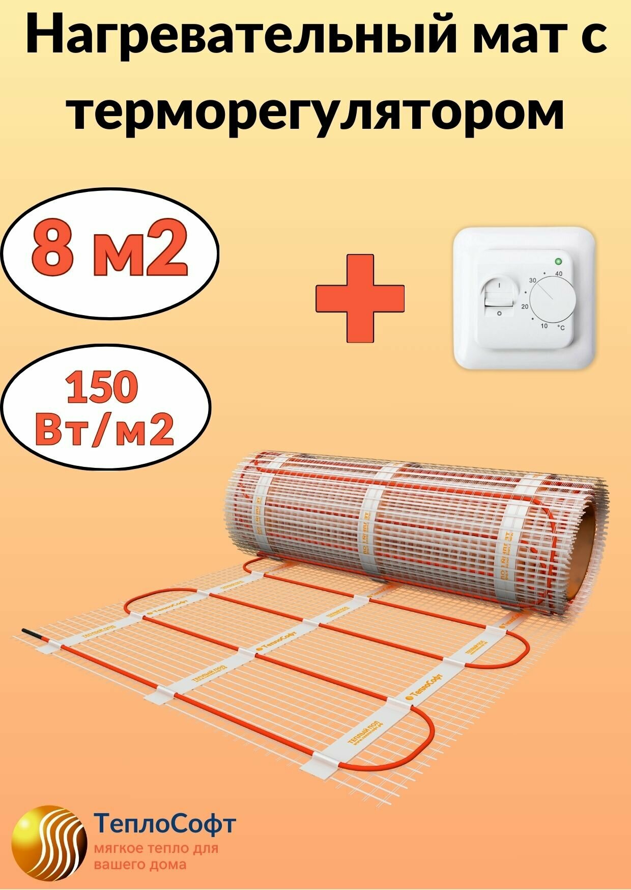 Тёплый пол под плитку Теплософт 8 м2 с терморегулятором информация: