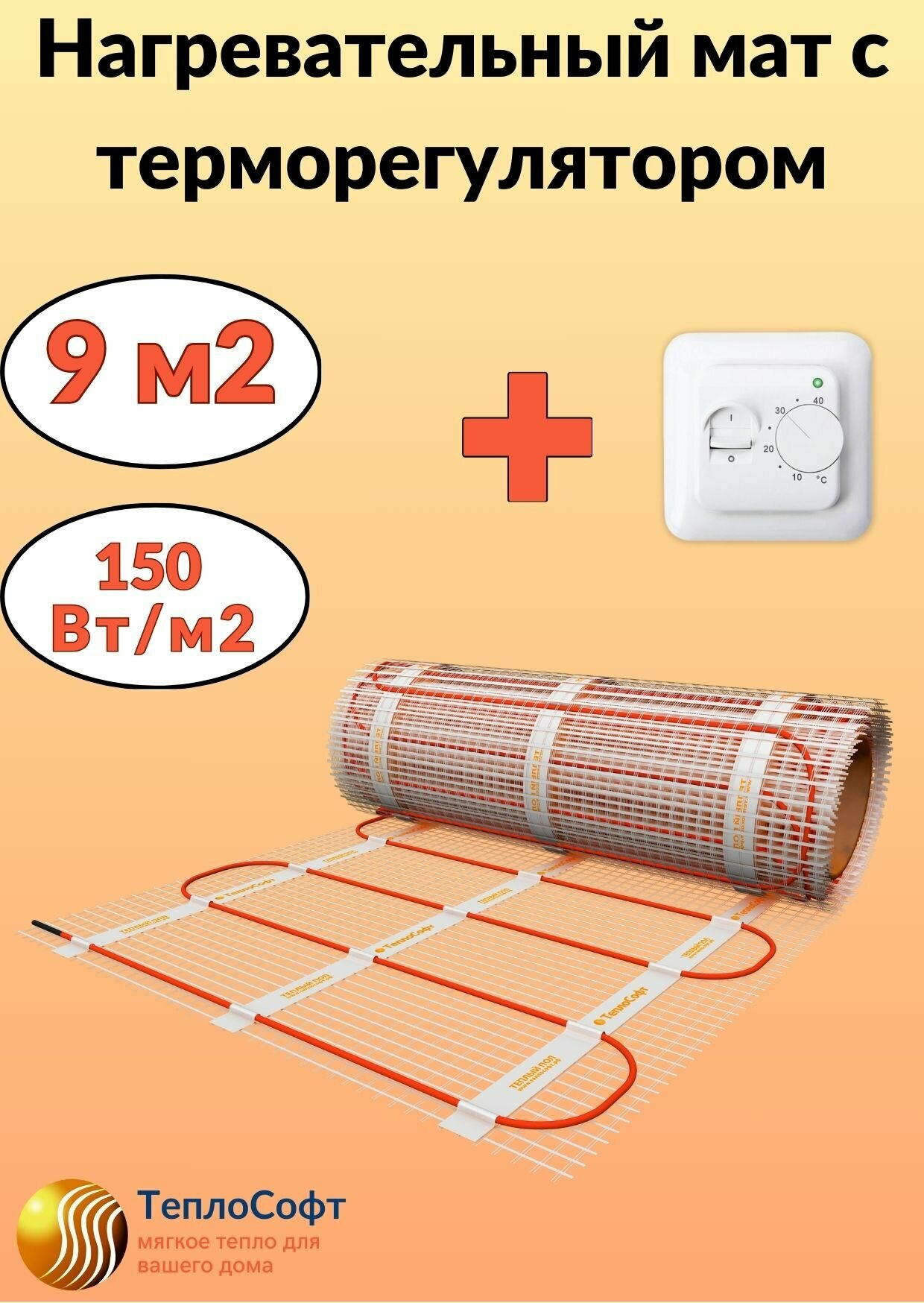 Тёплый пол под плитку Теплософт 9 м2 с терморегулятором информация: