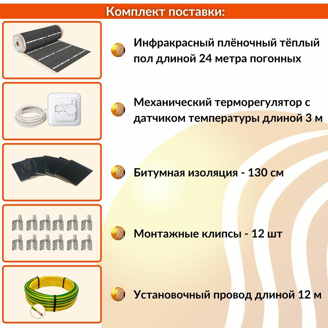 Инфракрасный пленочный теплый пол Теплософт 12 м², 2640 Вт с терморегулятором информация:
