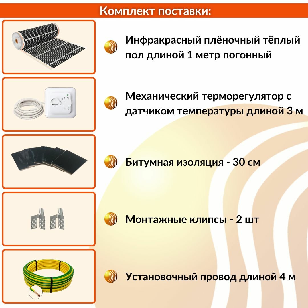Инфракрасный пленочный теплый пол Теплософт 0,5 м², 110 Вт с терморегулятором информация: