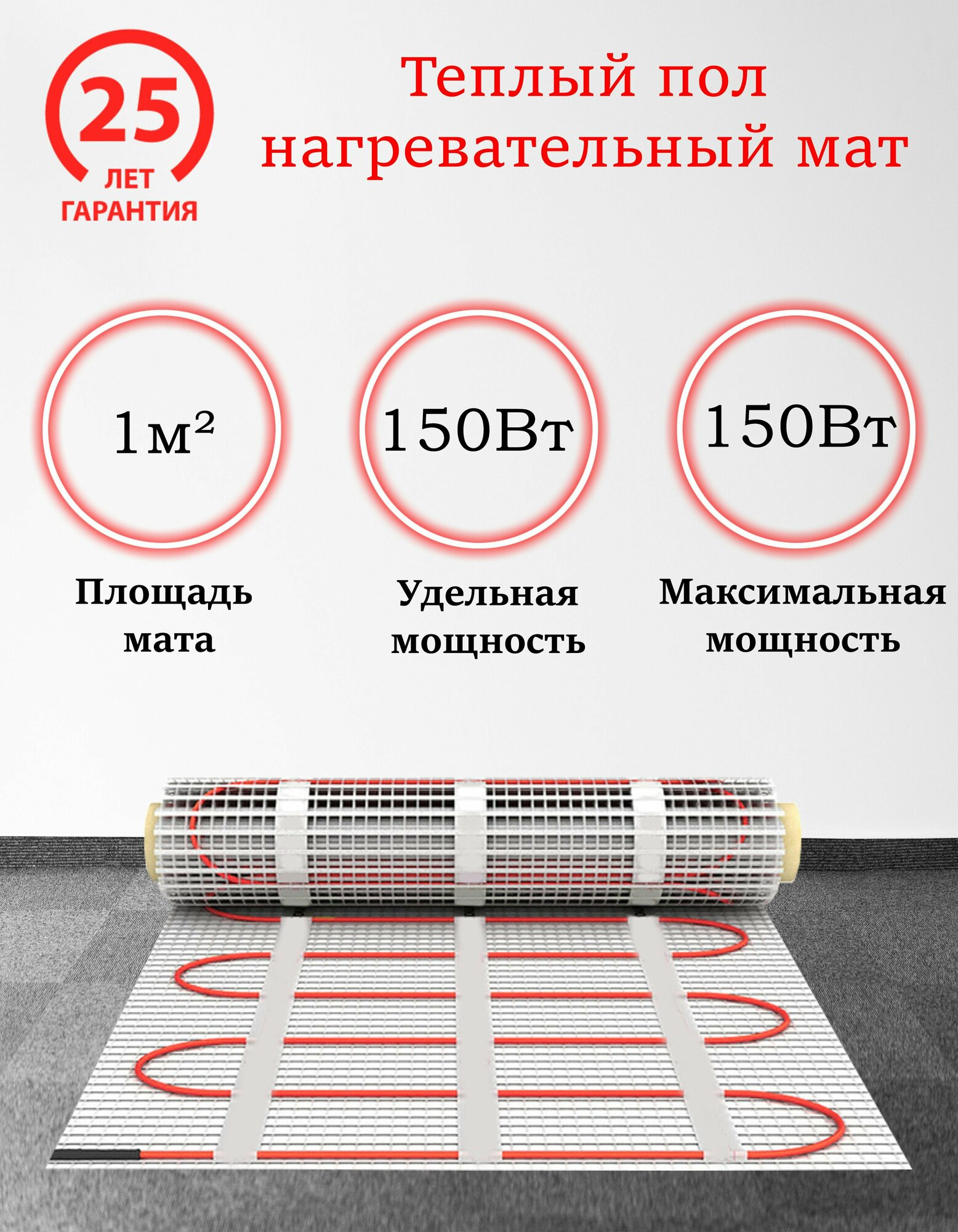 Теплый пол электрический мат нагревательный MrSpeed FHMT / Мощность : 150Вт-150Вт / Размер : 1 м2 информация: