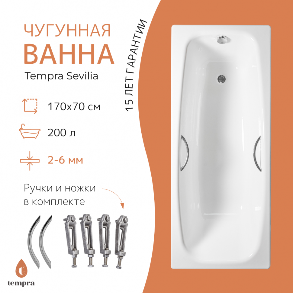 Ванна чугунная tempra Sevilia 170x70 информация: