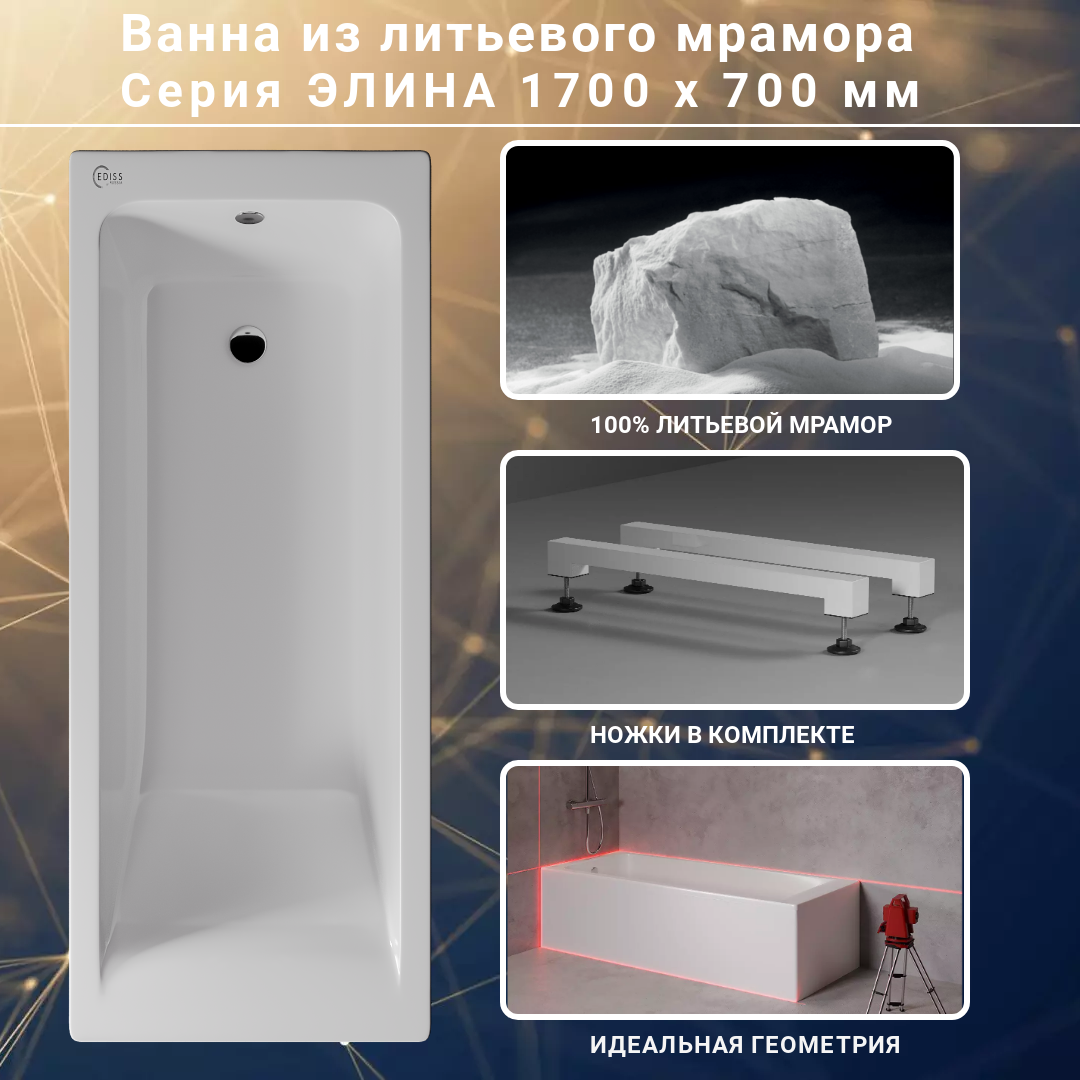 Ванна из литьевого мрамора Ediss Элина 1700х700мм (ножки в комплекте) информация: