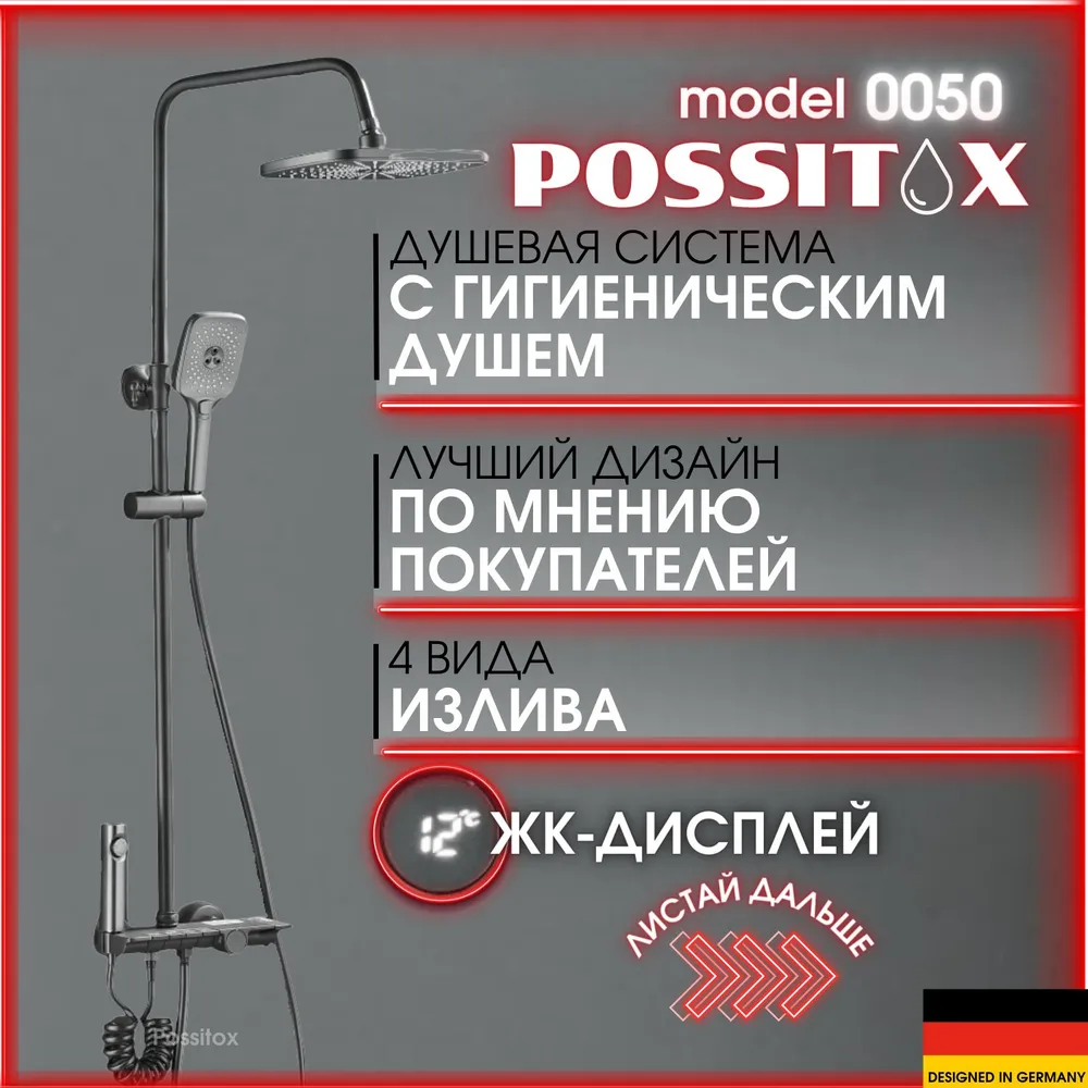 Отзывы на Душевая система, Душевая лейка, Душевая система стойка, темно-серый