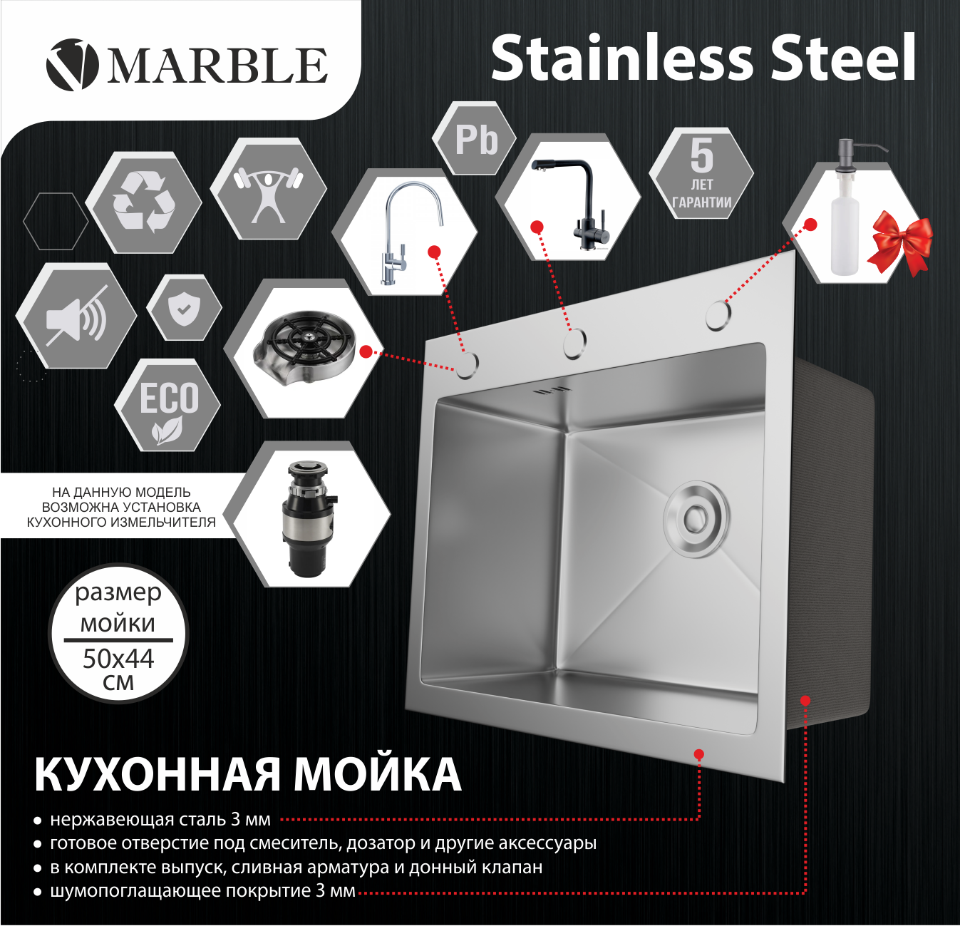 10 цен на Кухонная мойка из нержавеющей стали Marble VM500*440S с PVD покрытием