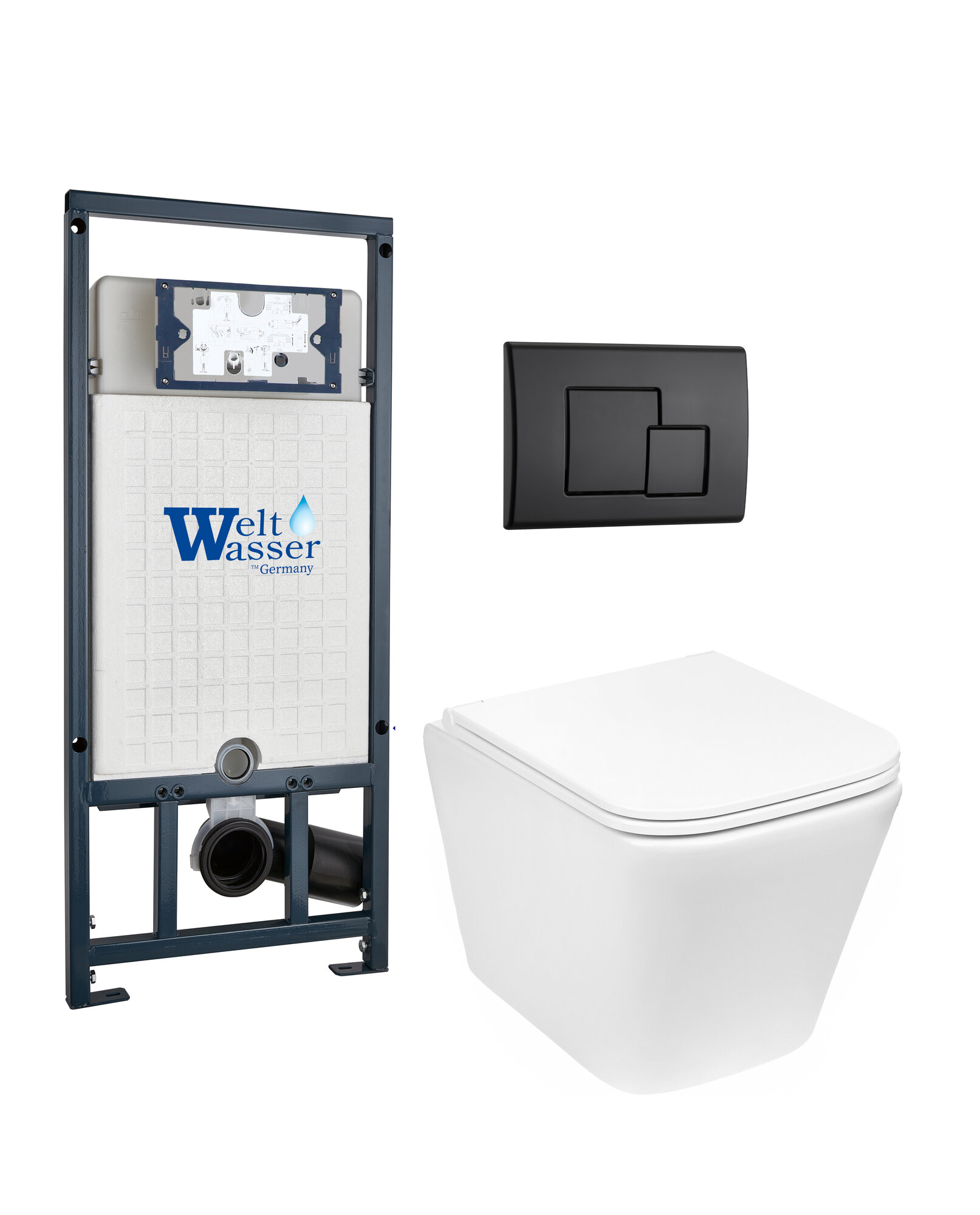 10 цен на Комплект 3 в 1: Weltwasser Кнопка черная матовая MARBERG 507 SE MT-BL+Инсталляция MARBERG 507+Унитаз подвесной GELBACH 004 MT-WT