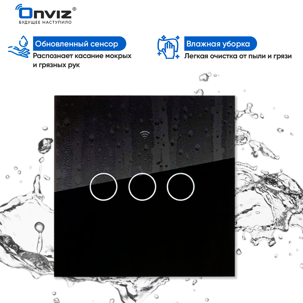 Умный выключатель с Алисой Яндекс Tuya Wi-Fi тройной сенсорный универсальный без нуля И С нулем черный стеклянный информация:
