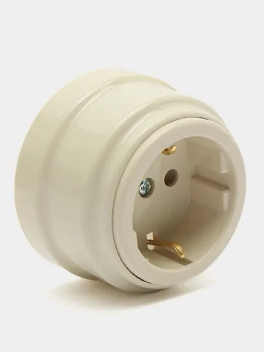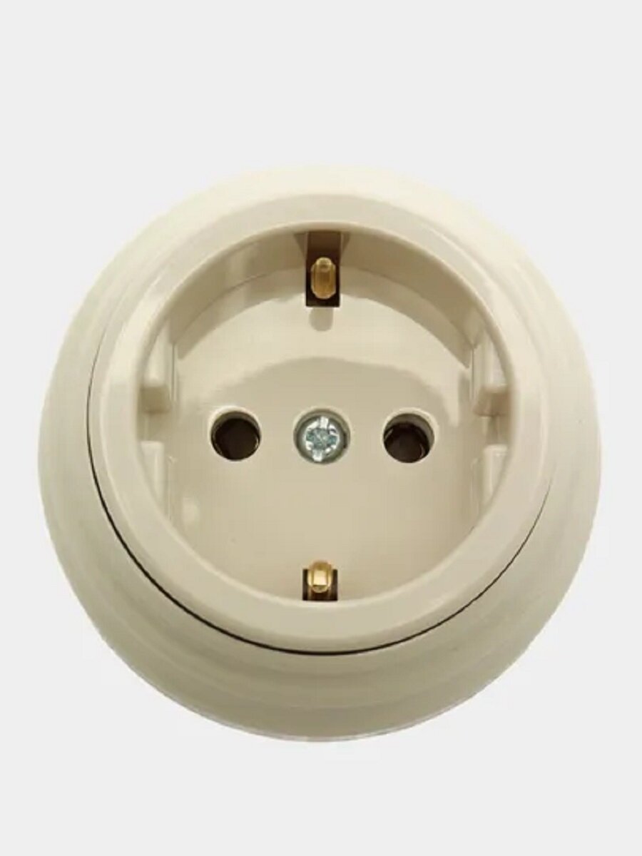 Отзывы на 5 штук Ретро розетка с заземляющим контактом, пластик, цвет бежевый