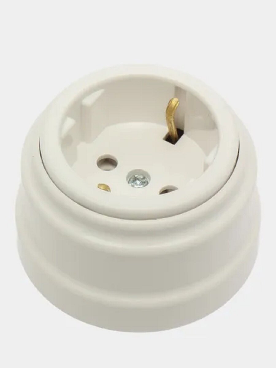 Ретро розетка с заземляющим контактом, пластик, цвет бежевый