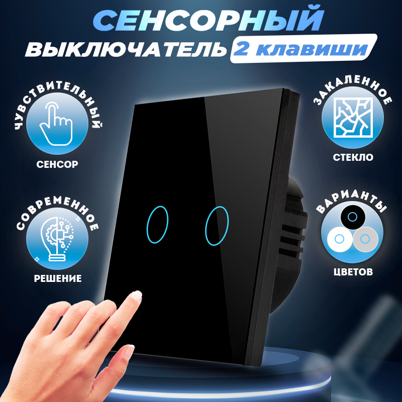 10 цен на Сенсорный выключатель двухклавишный, черный, на фазу