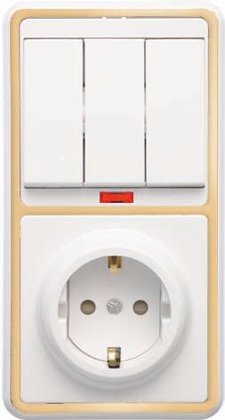 Кунцево-Электро Блок БКВР-212 Бэлла (3-кл. выкл. с инд. + розетка) зол. Кунцево 5842
