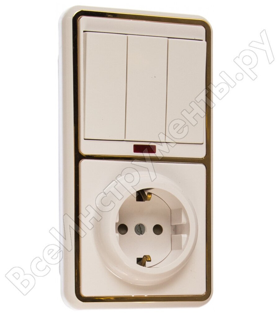 10 цен на 5850 Блок скрытой установки Кунцево-Электро БКВР-209 Бэлла золото, выключатель 3-клавишный с подстветкой, розетка 1-местная защитные шторки с заземлением
