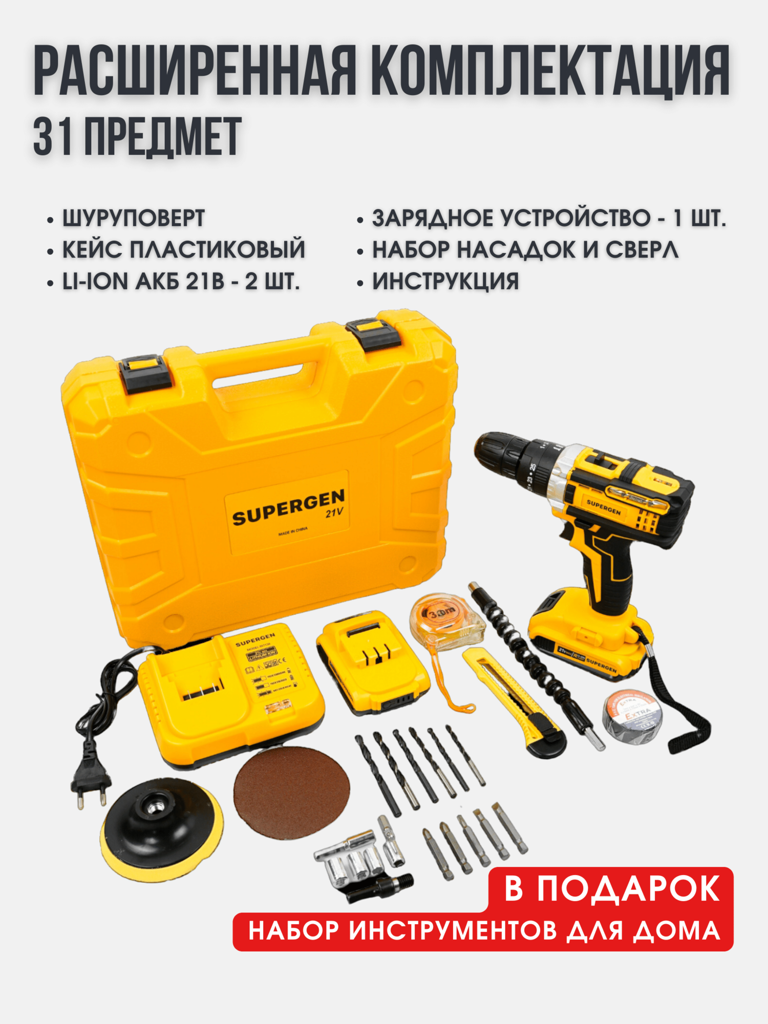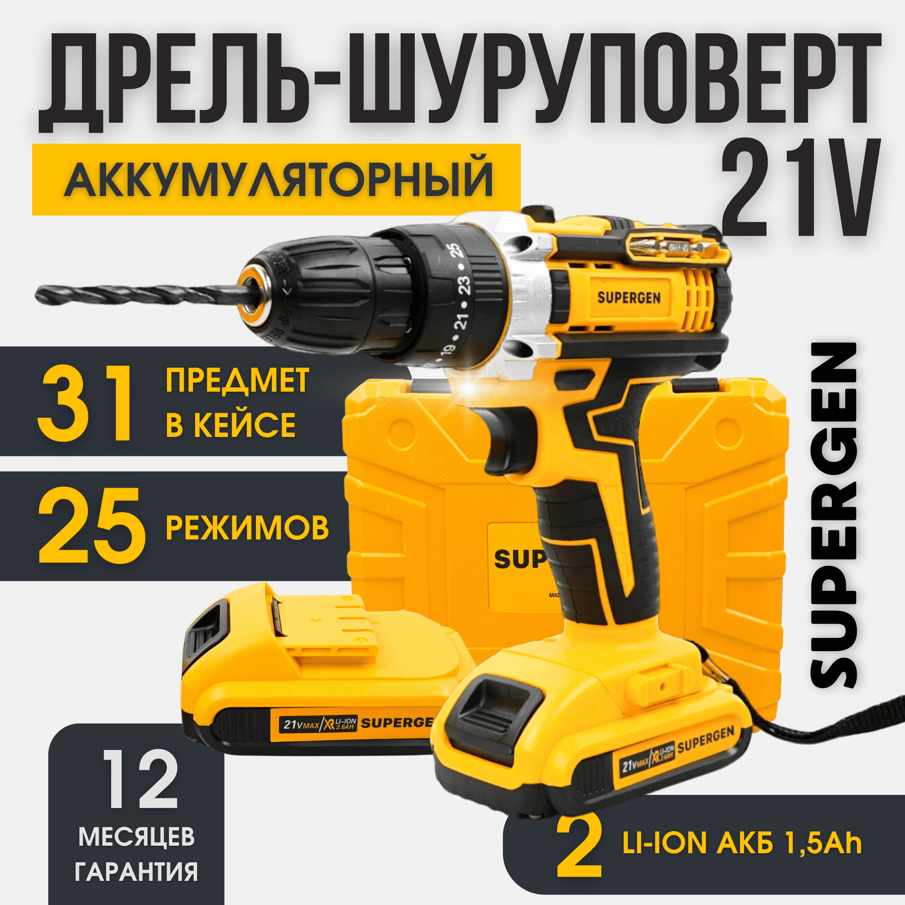 10 цен на Дрель шуруповерт безударный перфоратор аккумуляторный 21В с набором 31 предмет в кейсе