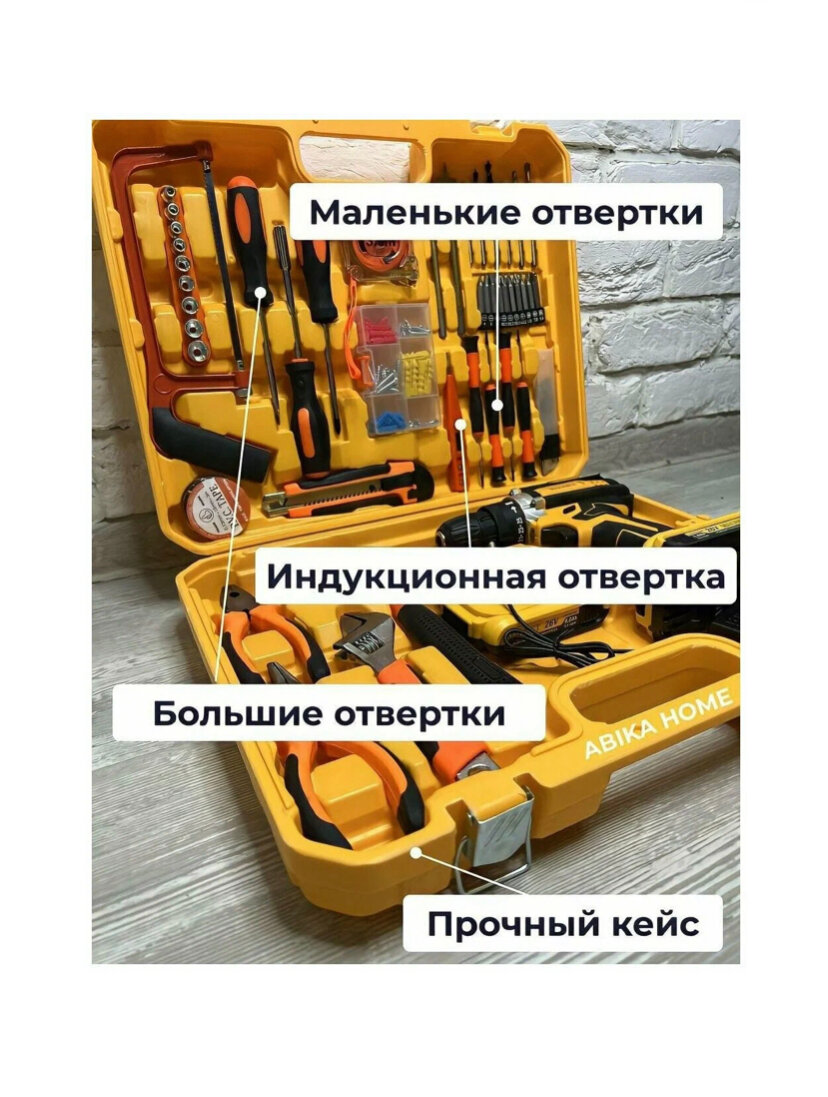 Аккумуляторная дрель-шуруповерт 48V, в кейсе с набором оснастки + 2 аккумулятора и перчатки в подарок
