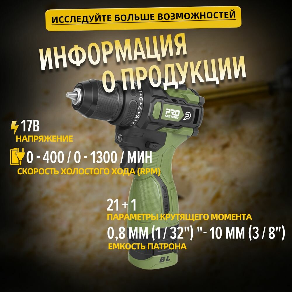 Дрель-шуруповерт аккумуляторная, Prostormer, PSBD002A, 17V, 55NM, Без щетки, 1500MAH Литиевый аккумулятор * 1, электрические инструменты информация: