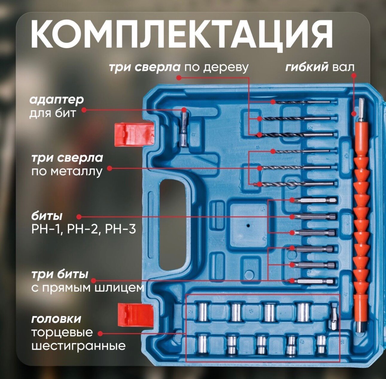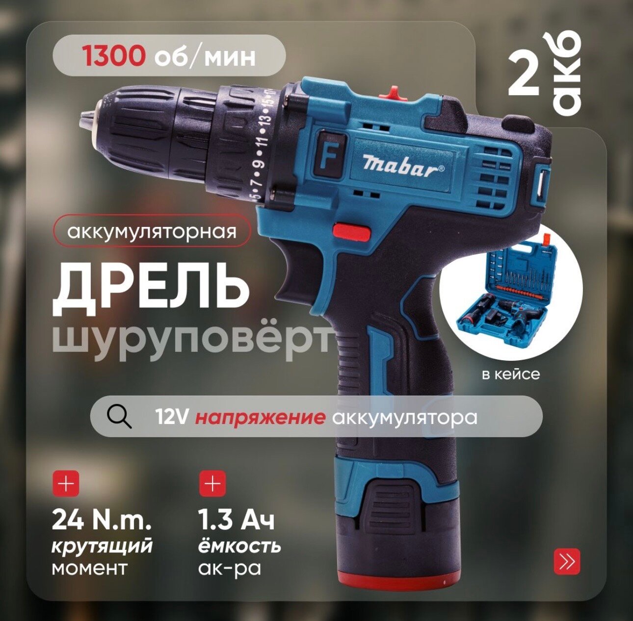 Аккумуляторный шуруповерт 12v с набором инструментов информация: