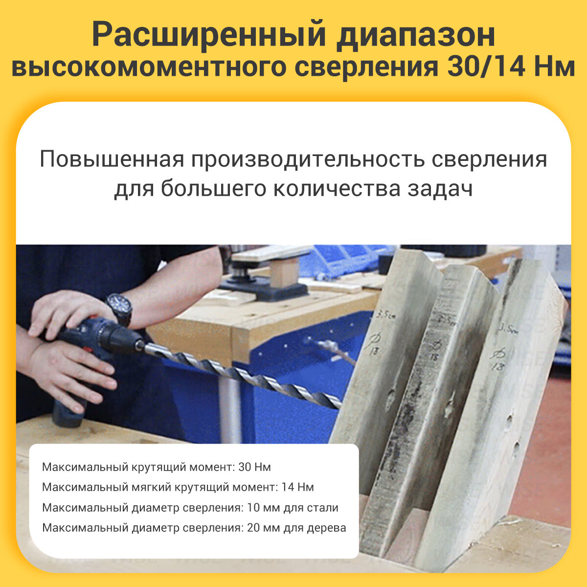 | Макс. диаметр сверления (дерево) | 20 мм |