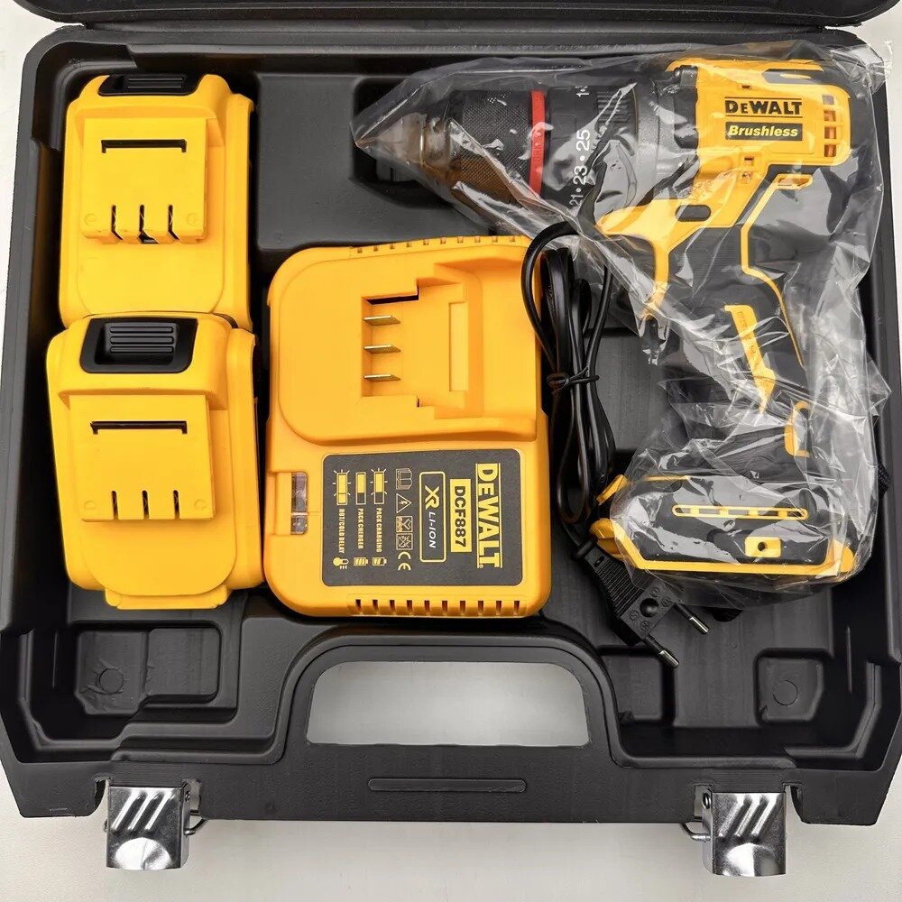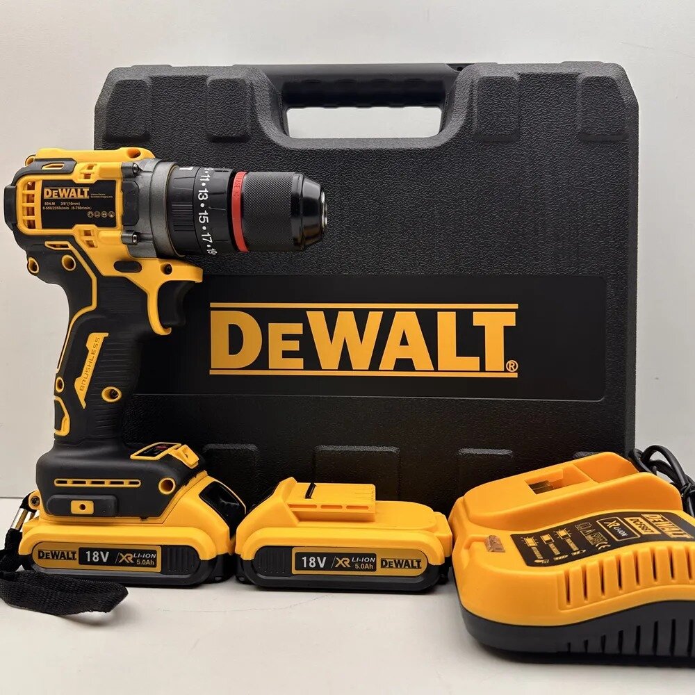 Бесщеточная шуруповерт c металлическим 10мм патроном и двумя аккумуляторами 18v. Ударная дрель. информация: