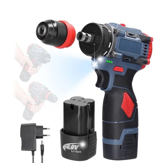 10 цен на Аккумуляторная дрель-шуруповерт 16,8V со съемным патроном, 45 н/м, бесщеточная