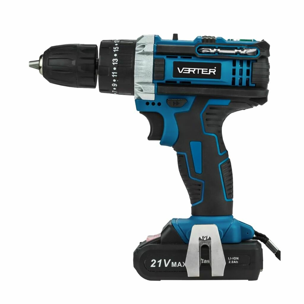 10 цен на Аккумуляторная дрель-шуруповерт Verter с 2 скоростями и подсветкой, 24 насадки, 21 В, 2 АКБ в кейсе