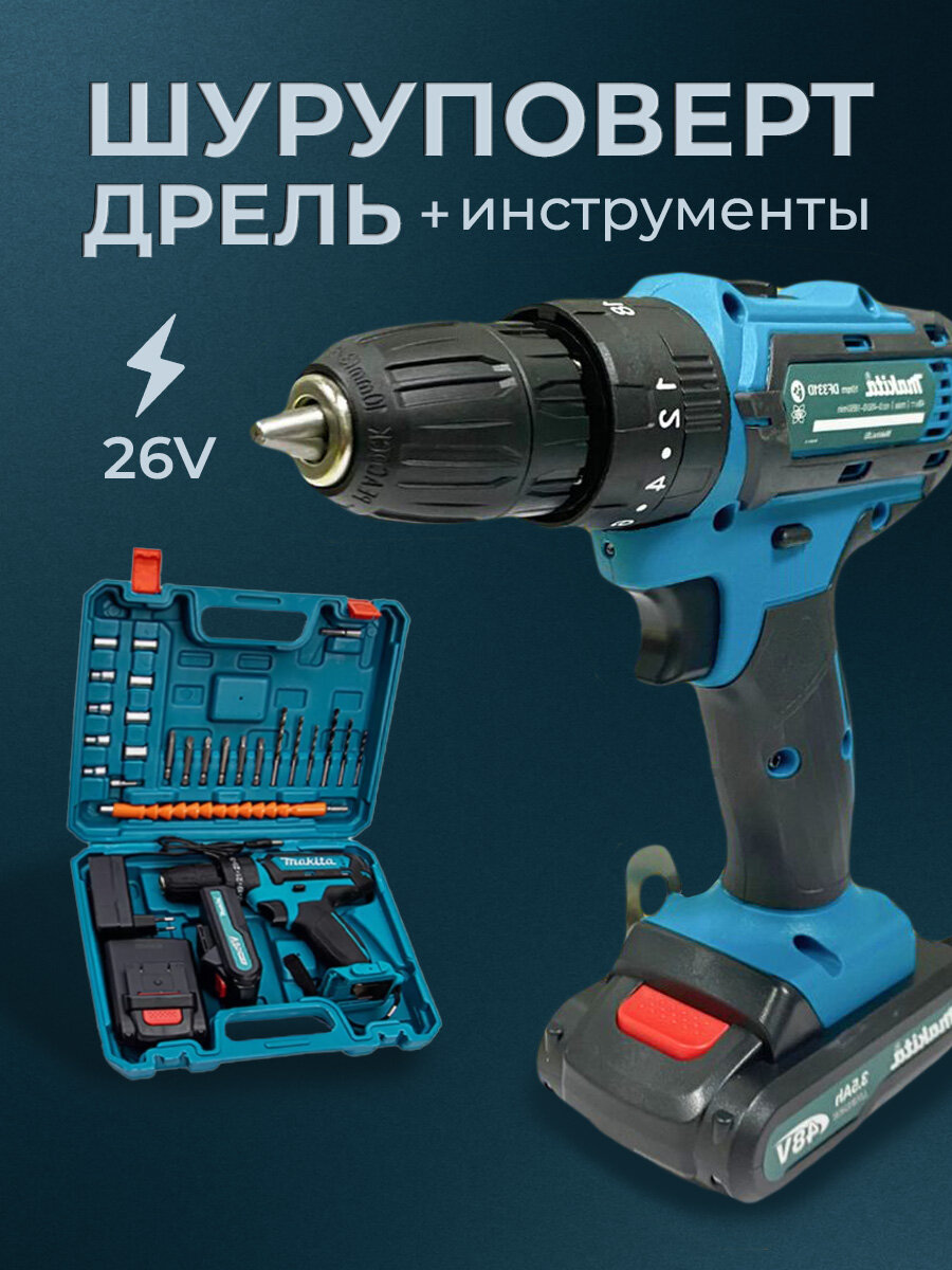 10 цен на Дрель-шуруповерт 26В, 2 аккумулятора