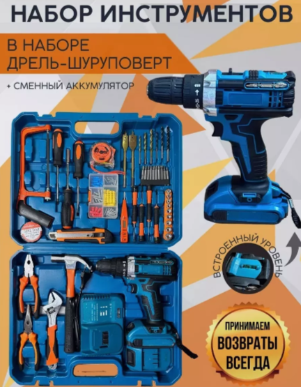 Отзывы на Аккумуляторная дрель-шуруповерт с набором инструментов 50 предметов, шуруповерт, набор инструментов, для дома, для дачи