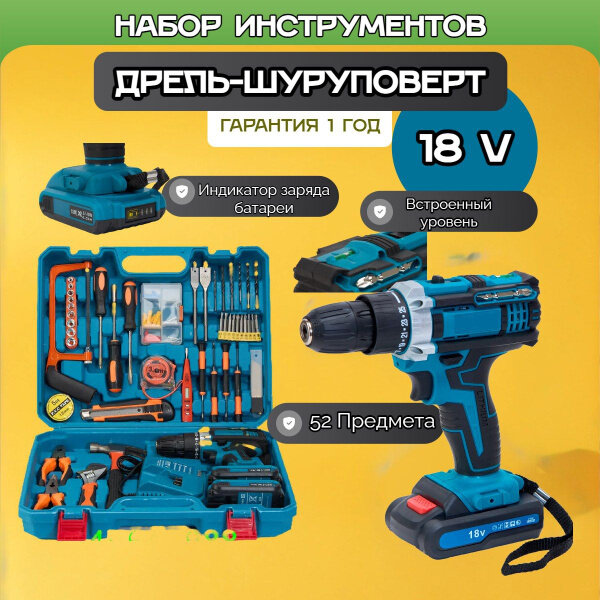 Аккумуляторная дрель-шуруповерт с набором инструментов 50 предметов, шуруповерт, набор инструментов, для дома, для дачи информация: