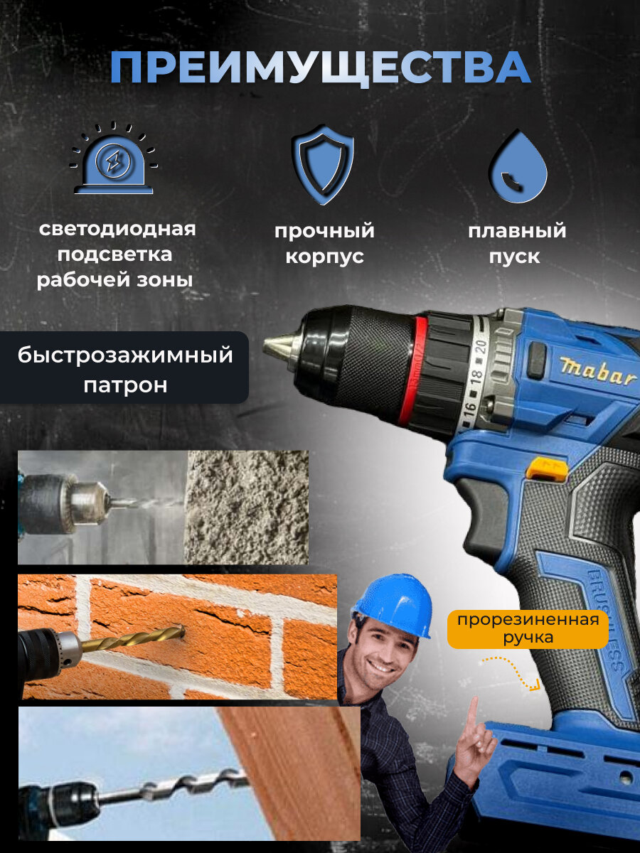 10 цен на Шуруповерт дрель аккумуляторный Mabar 8013