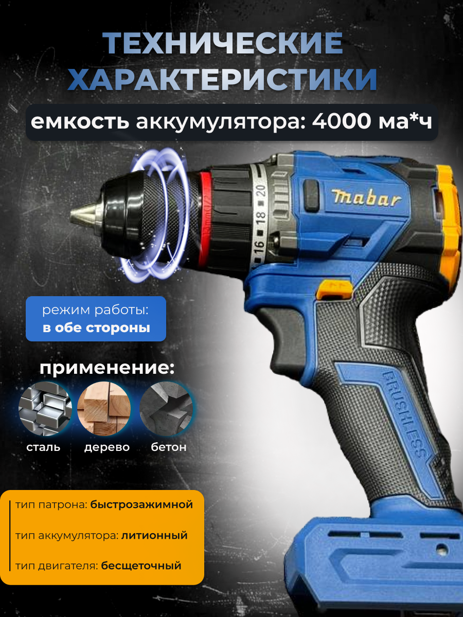 Шуруповерт дрель аккумуляторный Mabar 8013 информация: