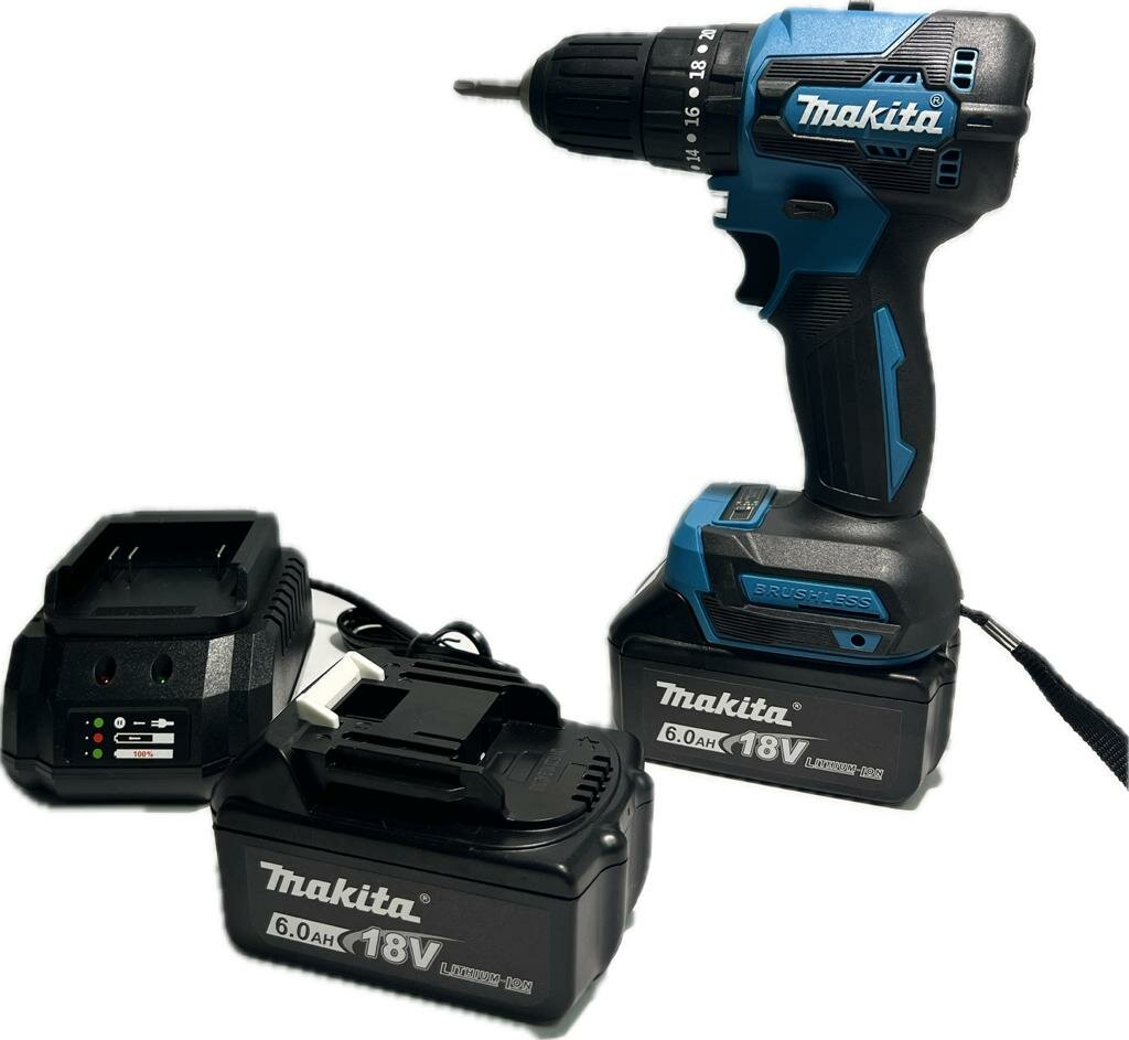 Мощный бесщеточный шуруповерт с 2 аккумуляторами и зарядным устройством, аналог информация:
