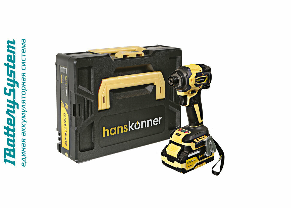 Аккумуляторный ударный винтоверт Hanskonner HCD20280BLC 1BatterySystem (18 В, 280 Нм, 1/44скор, 1x4.0 Ач, кейс HS)