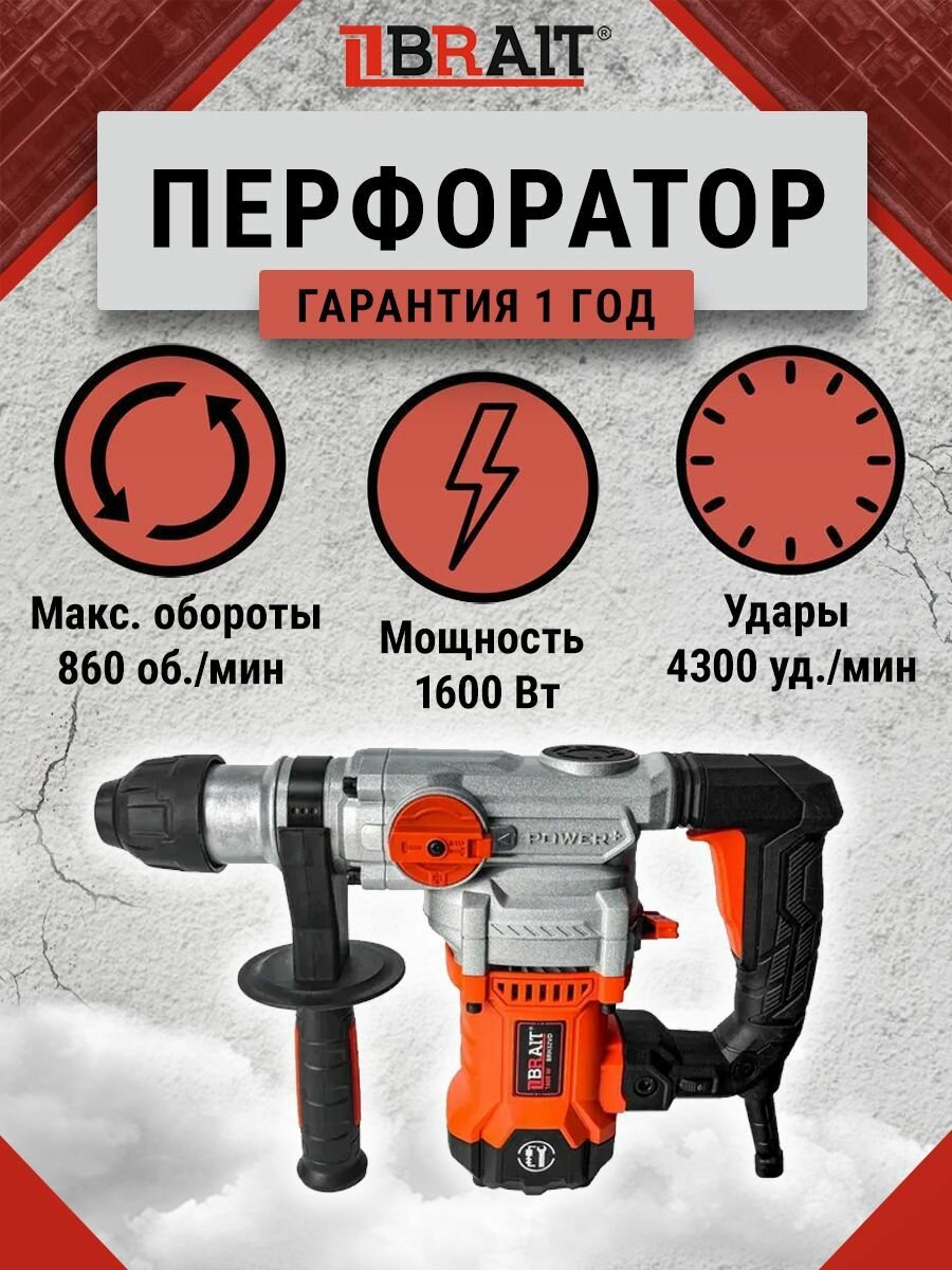 Перфоратор электрический BRAIT BRH32VD, 1600 Вт, в кейсе информация: