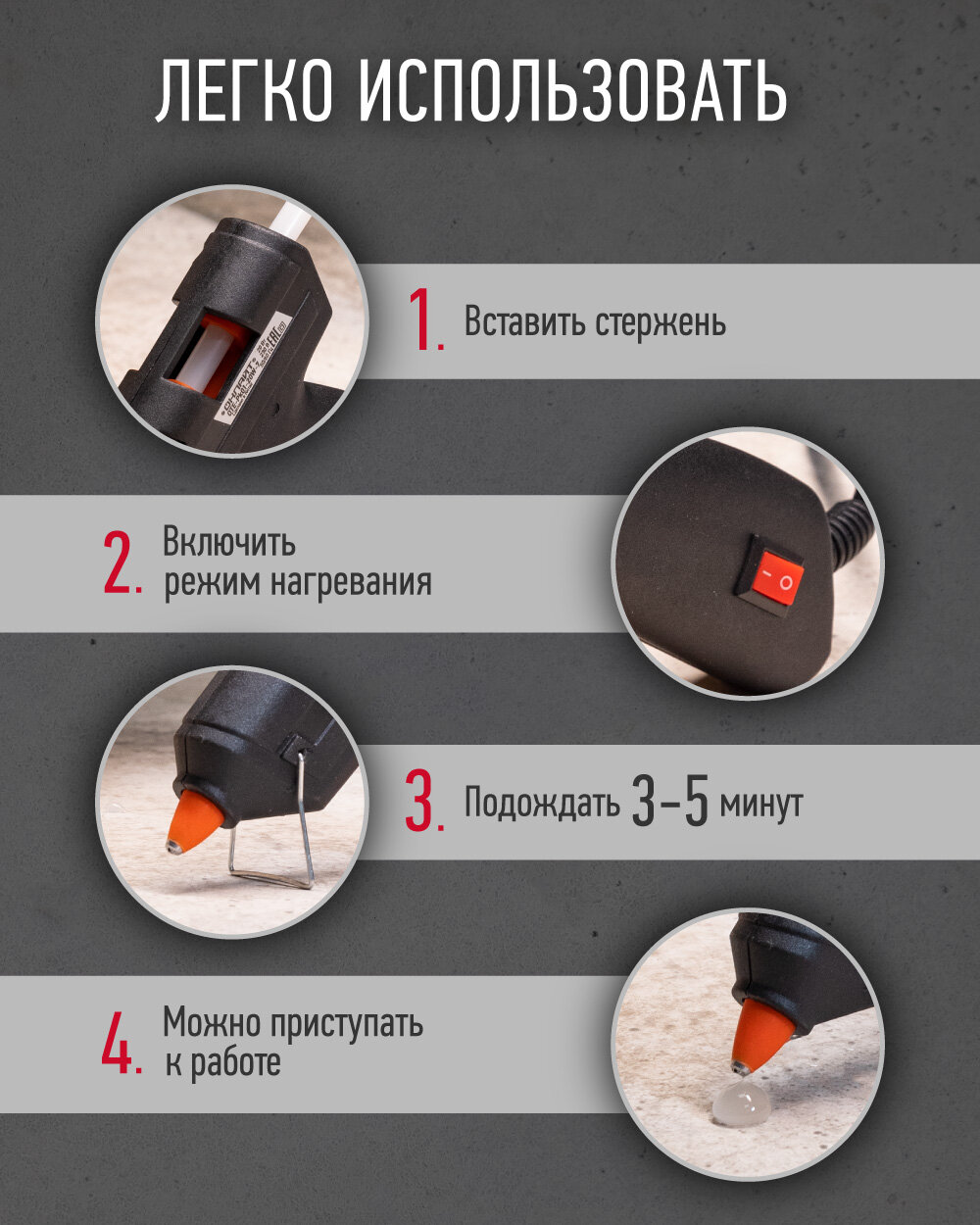 Клеевой пистолет для творчества онлайт 90 084, 20 Вт, 7 мм, черный информация: