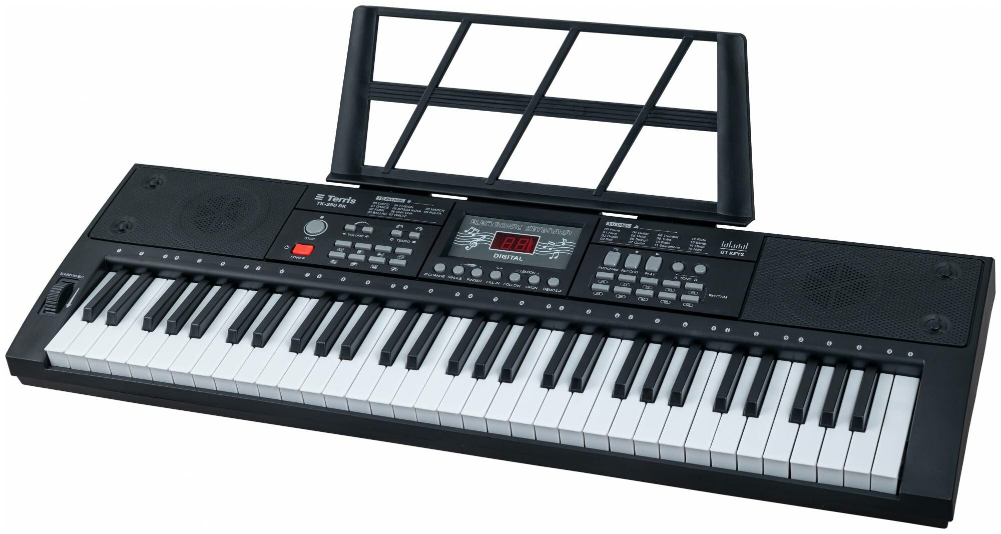 10 цен на TERRIS TK-250 BK синтезатор, 61 мини клавиша, микрофон, цвет черный