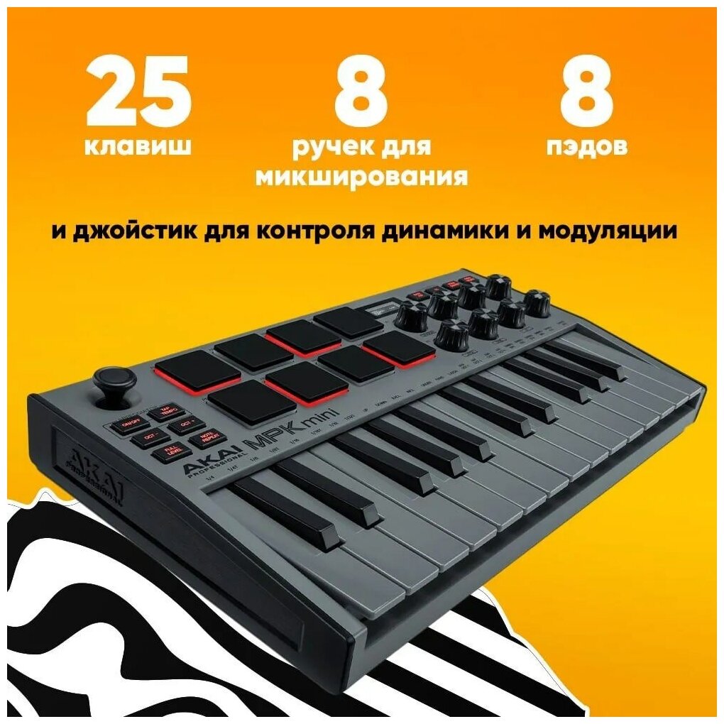 Миди клавиатура USB MIDI AKAI MPK Mini MK3 Gray информация: