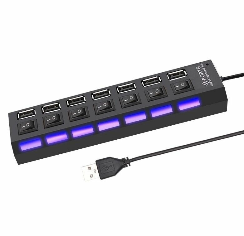 USB Hub разветвитель на 7 USB с выключателями (Черный)